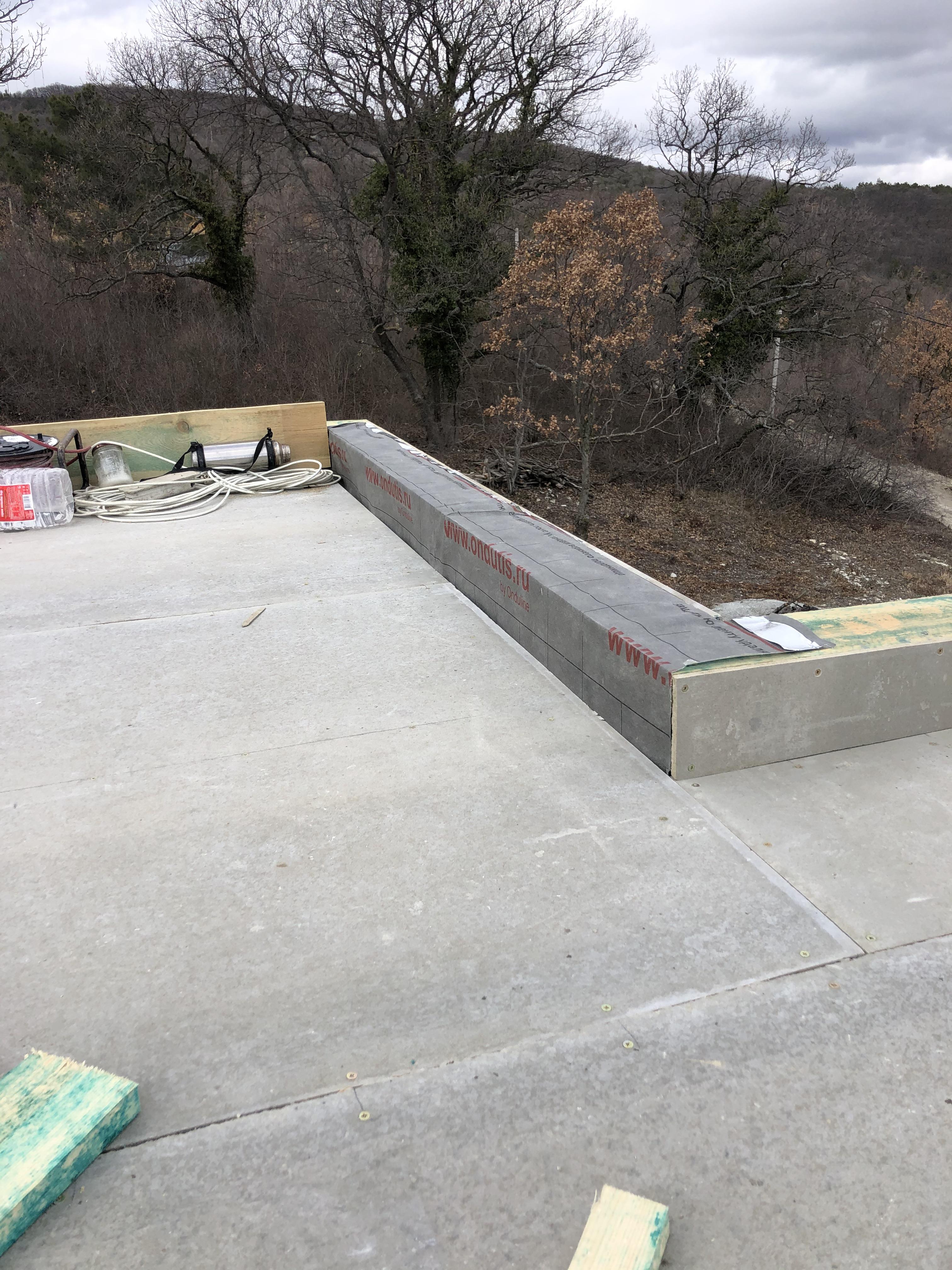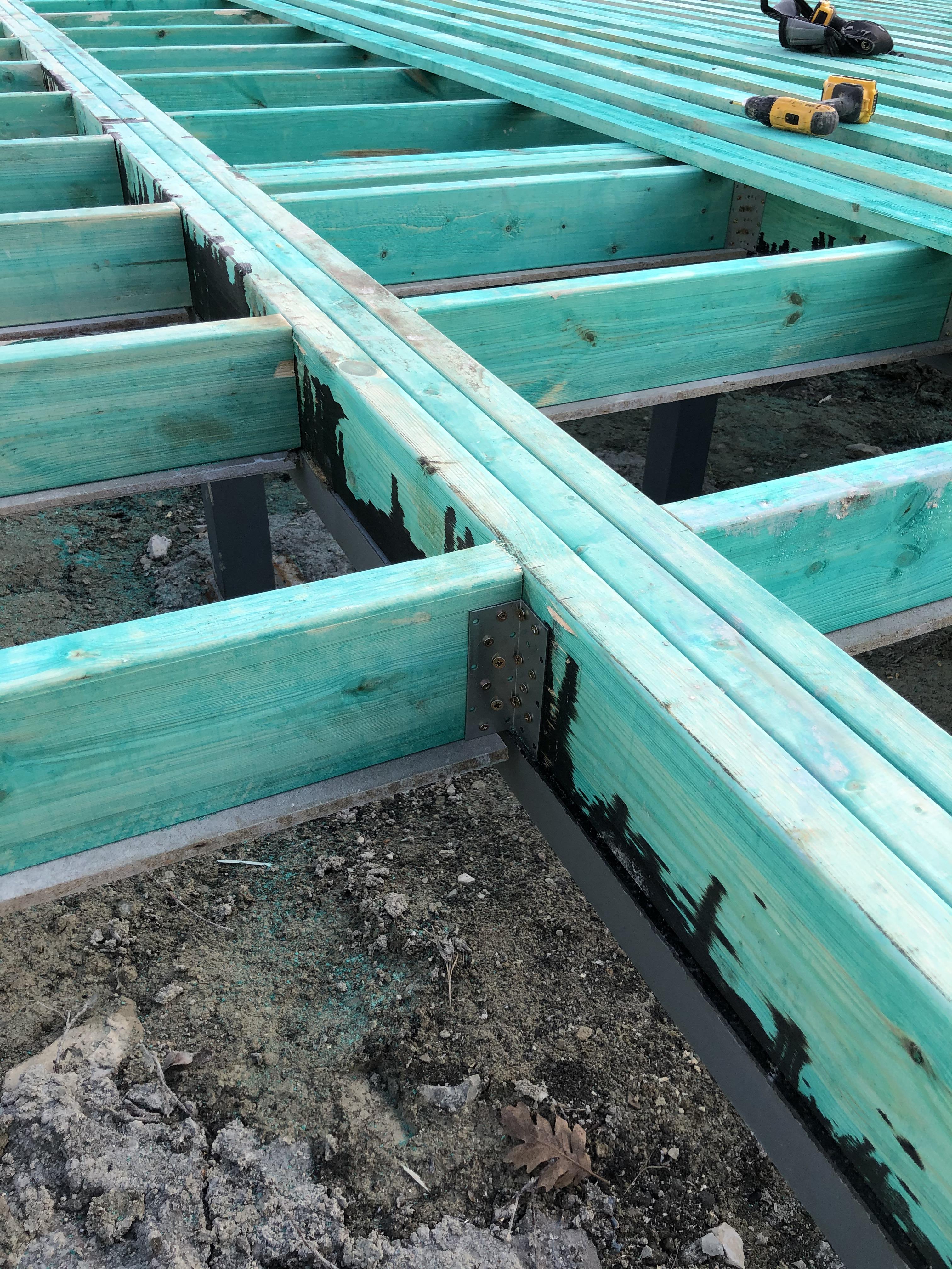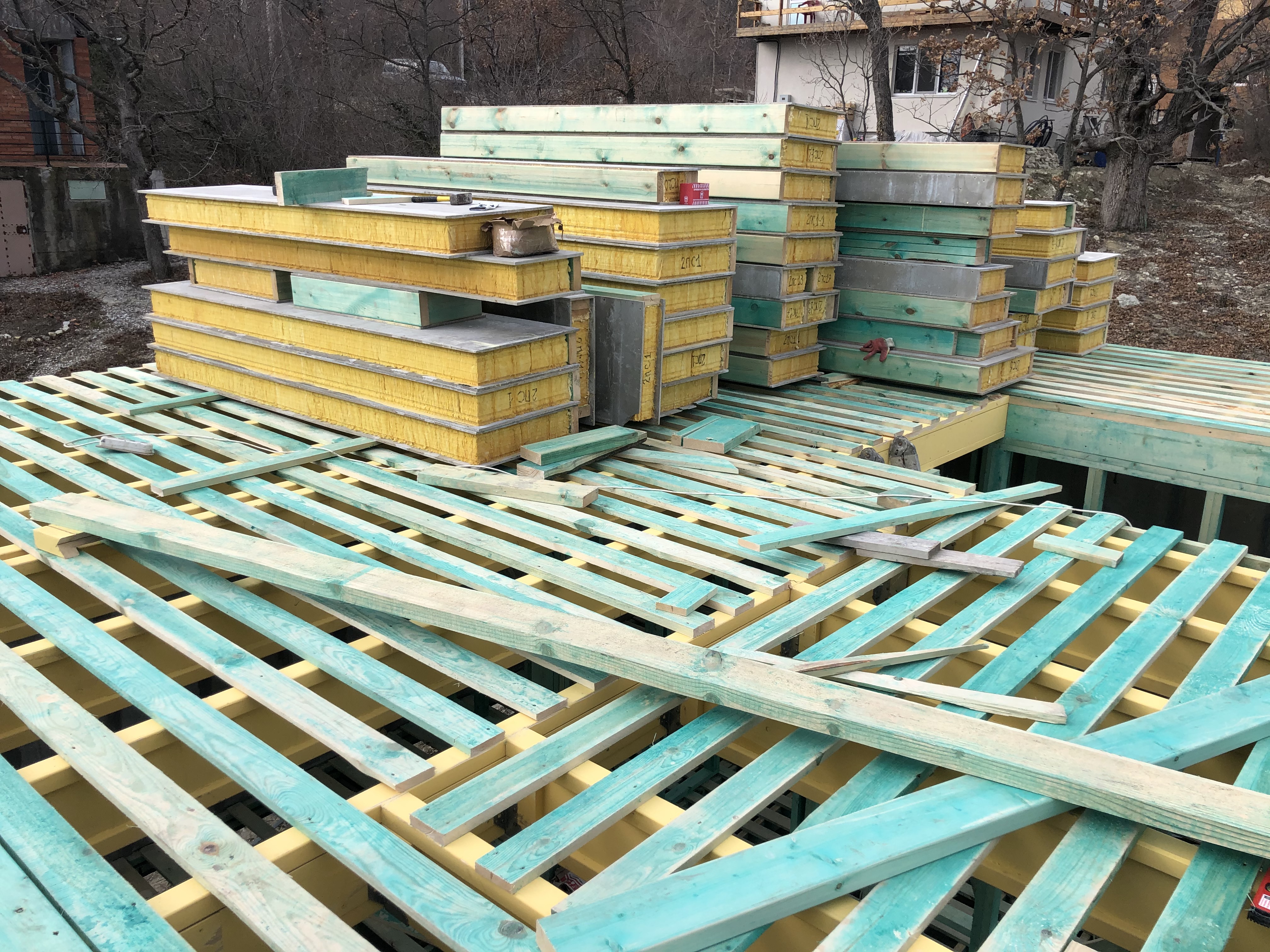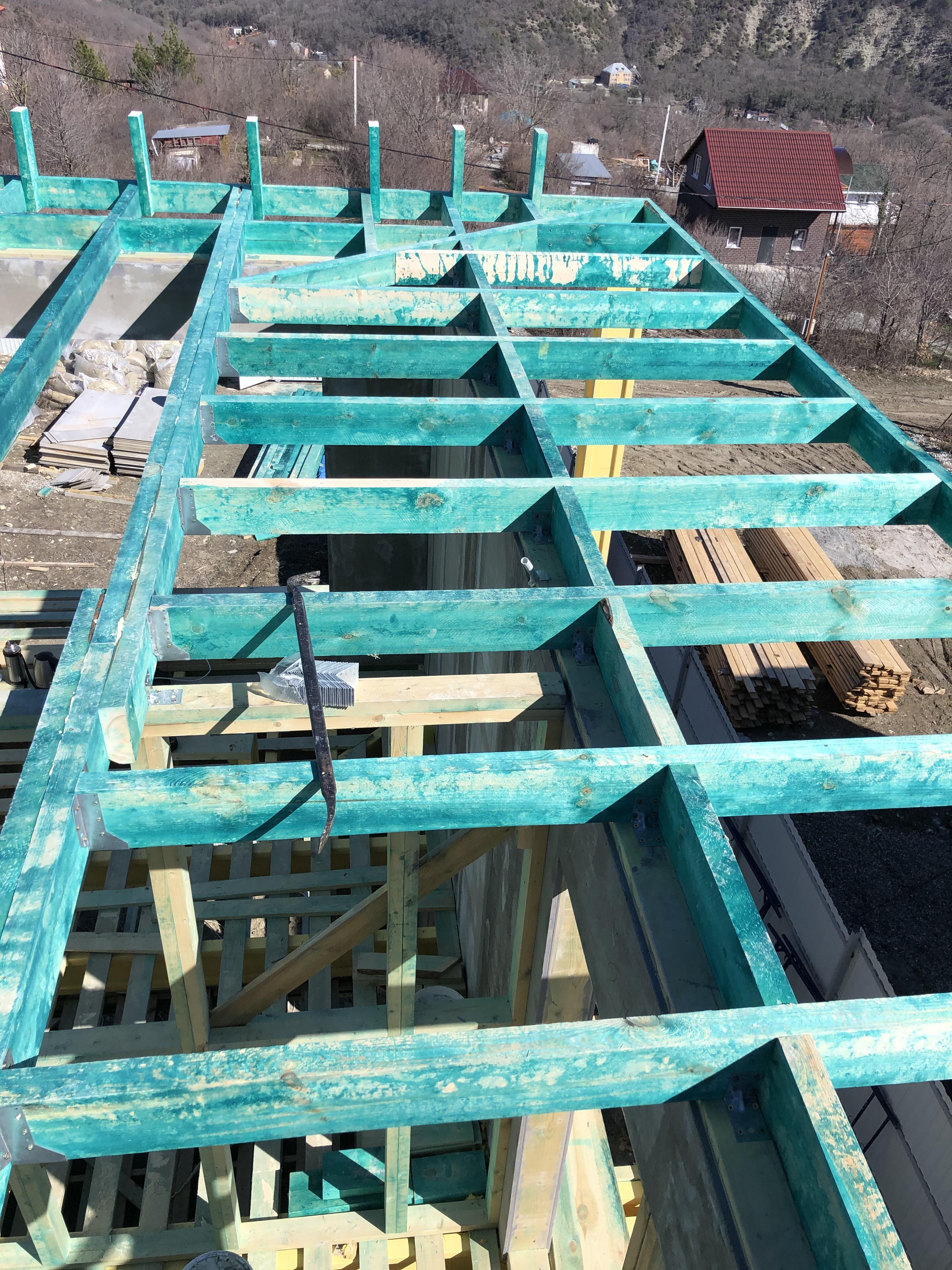 Ростверк изготовлен из калиброванного клееного бруса и защищен снаружи цементно-стружечной плитой
