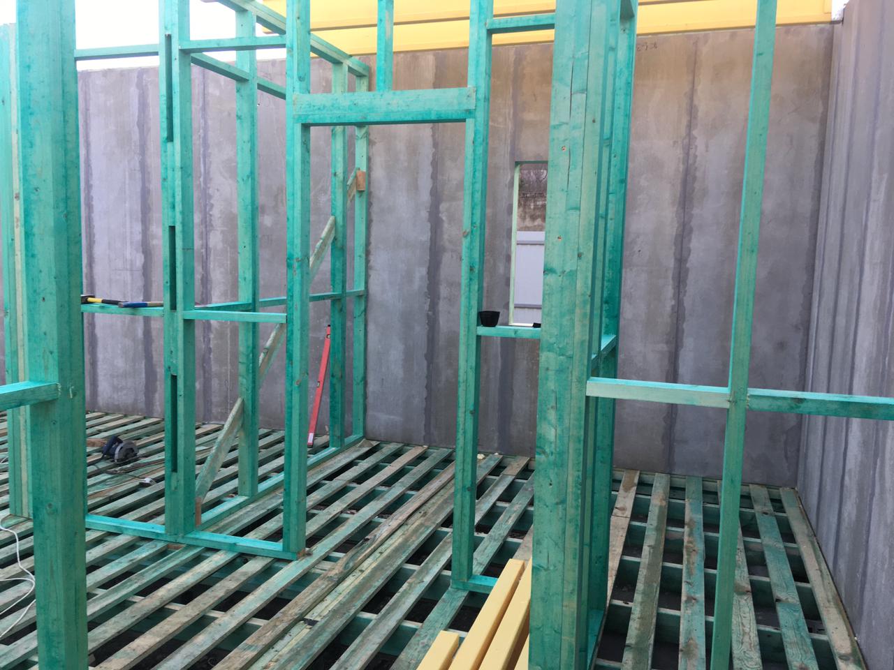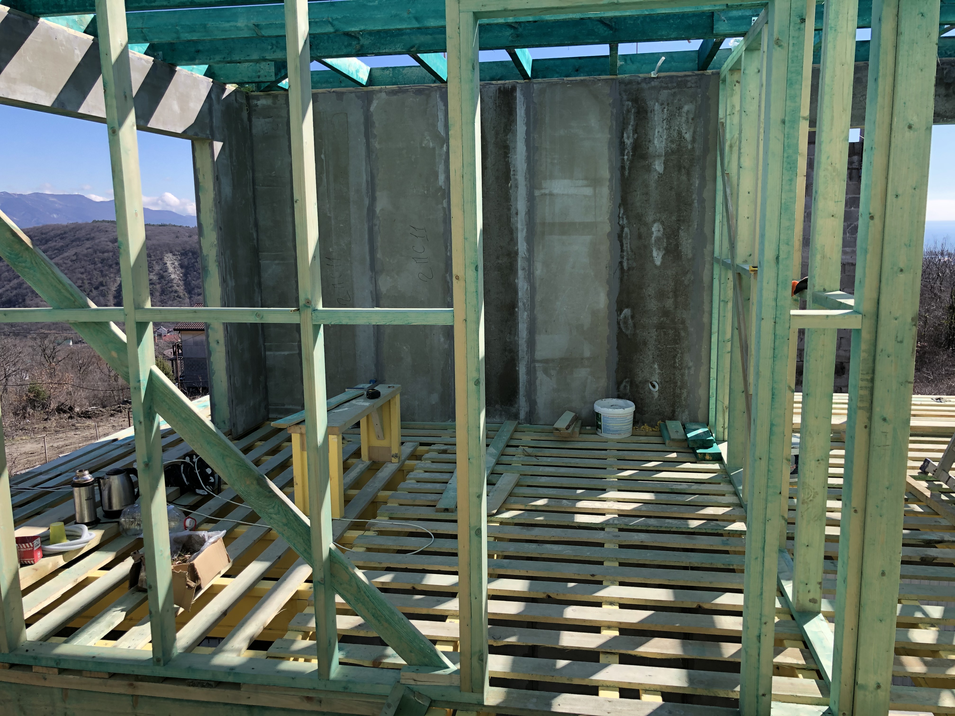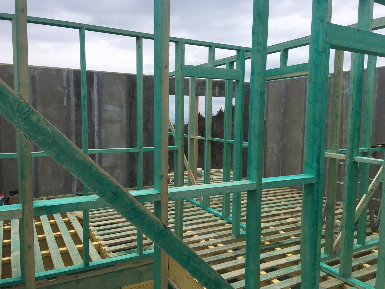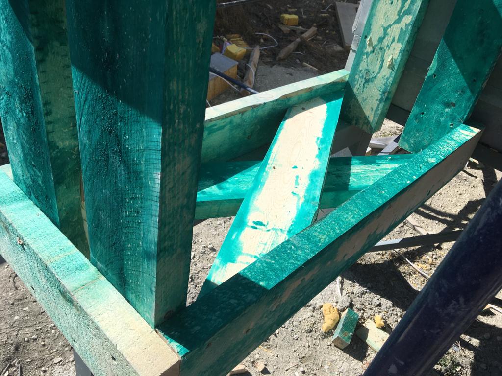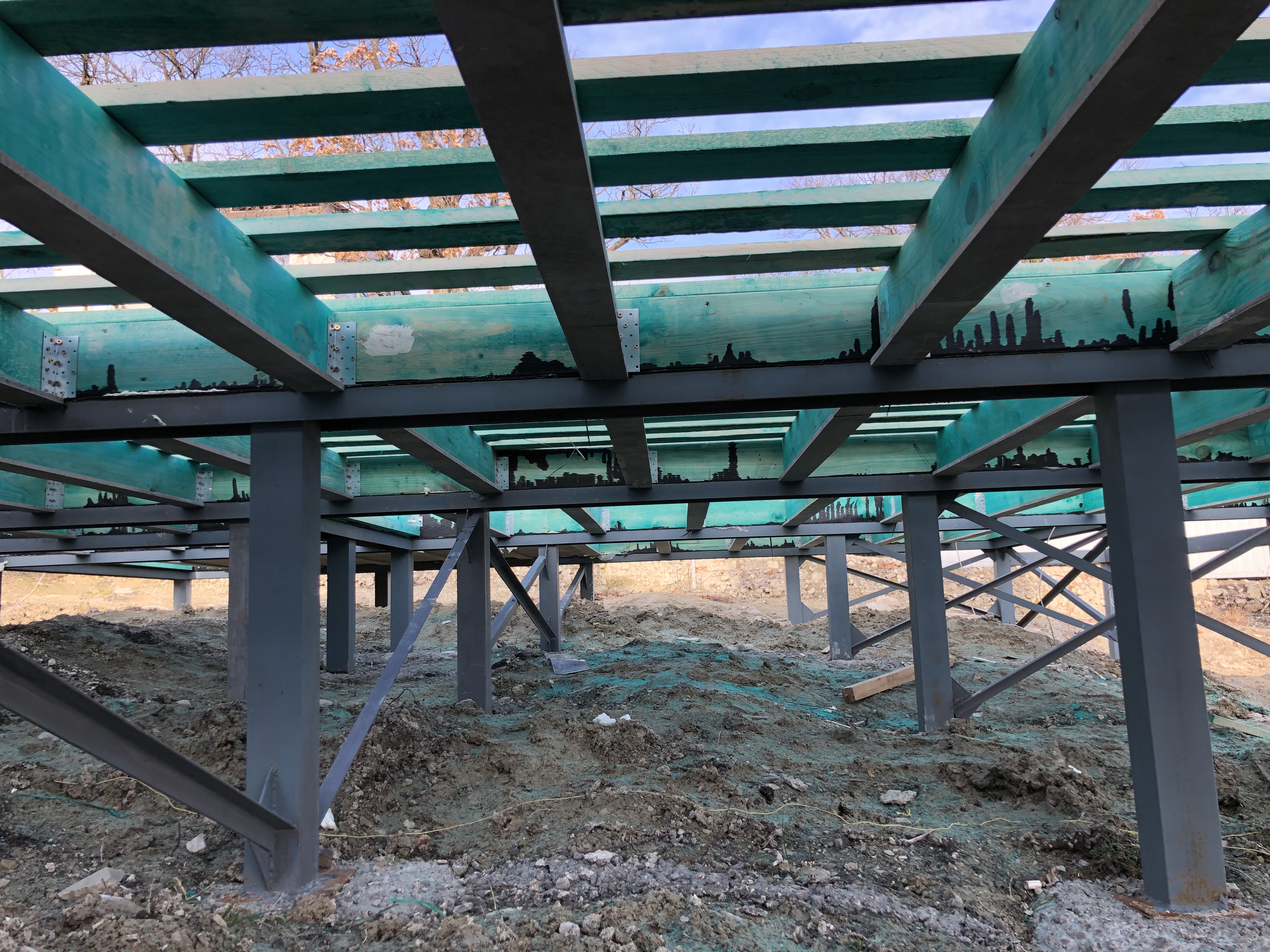 Ростверк изготовлен из калиброванного клееного бруса и защищен снаружи цементно-стружечной плитой