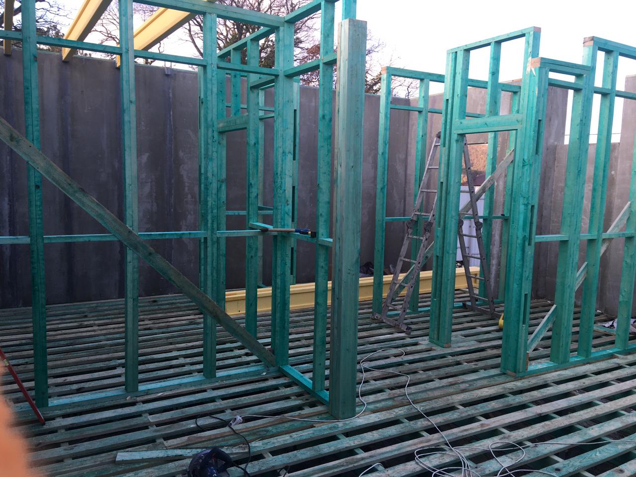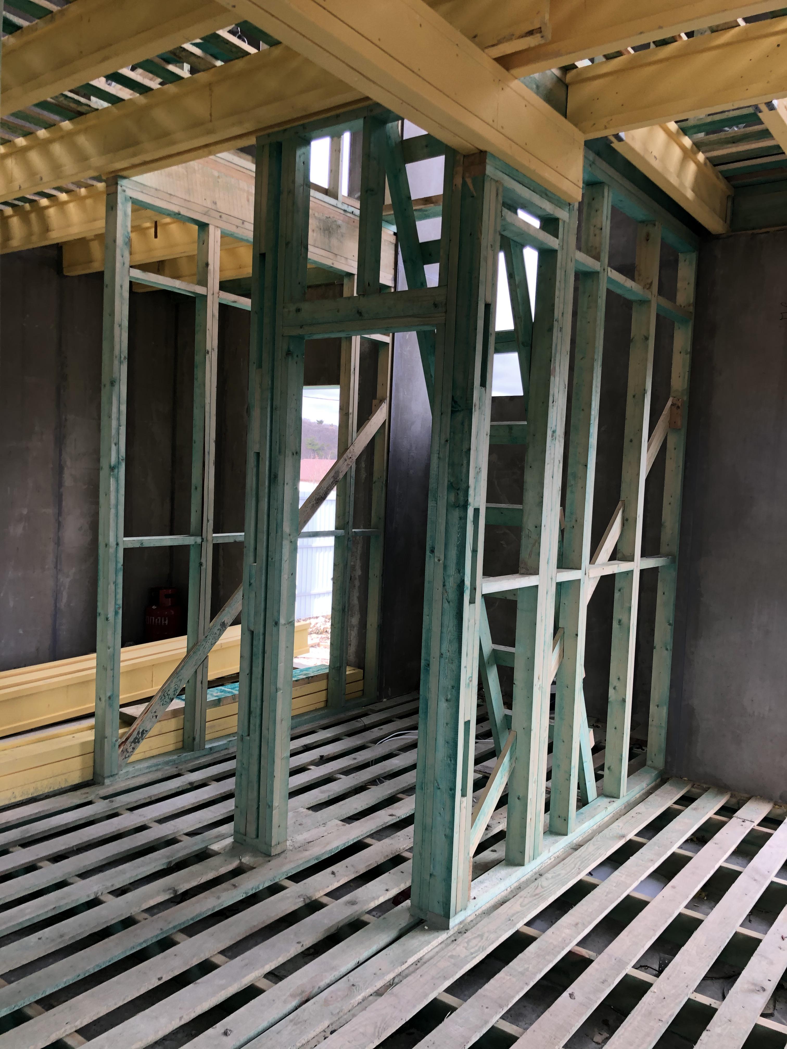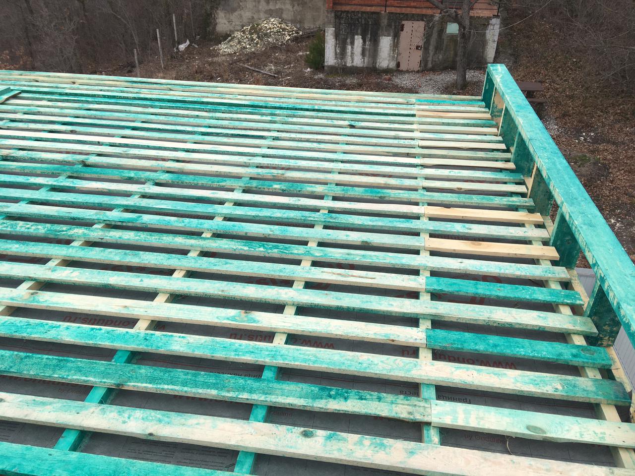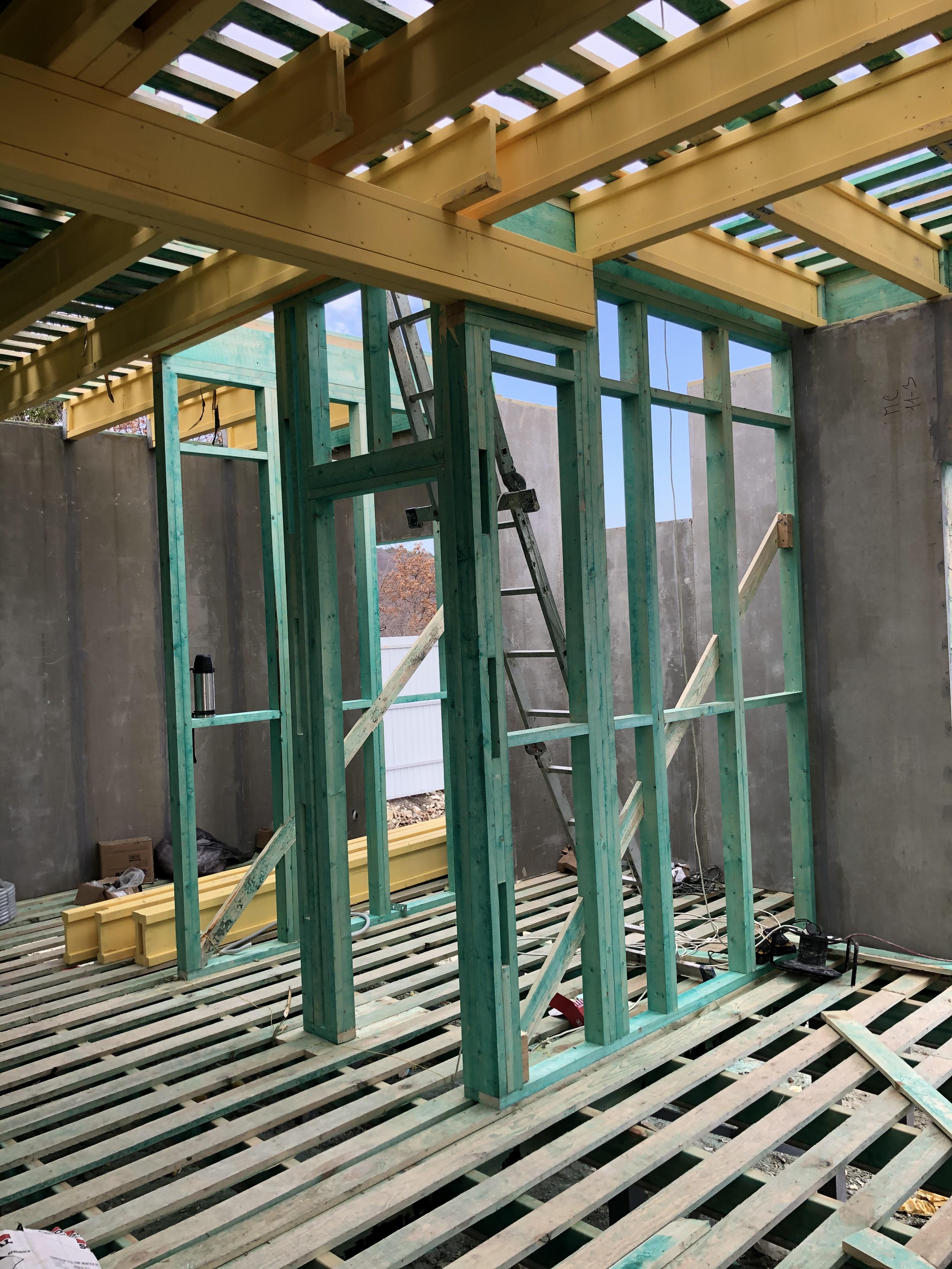 Ростверк изготовлен из калиброванного клееного бруса и защищен снаружи цементно-стружечной плитой