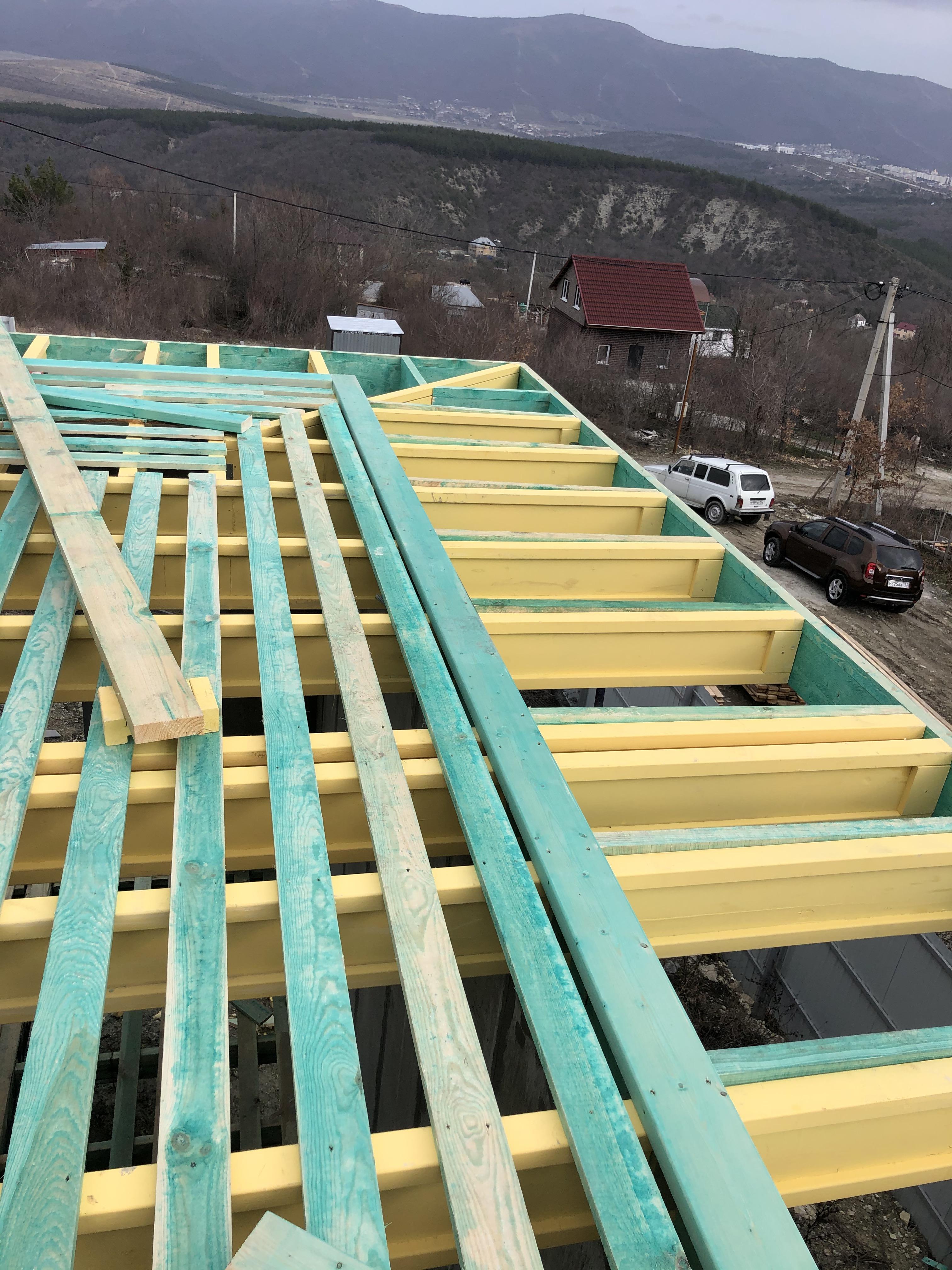 Кровля может быть построена из бруса 150х50мм или SIP панелей. В качестве кровельного материала можно использовать: металлочерепицу, битумную и керамическую черепицу. Также производим кровельные шовные сэндвич-панели.