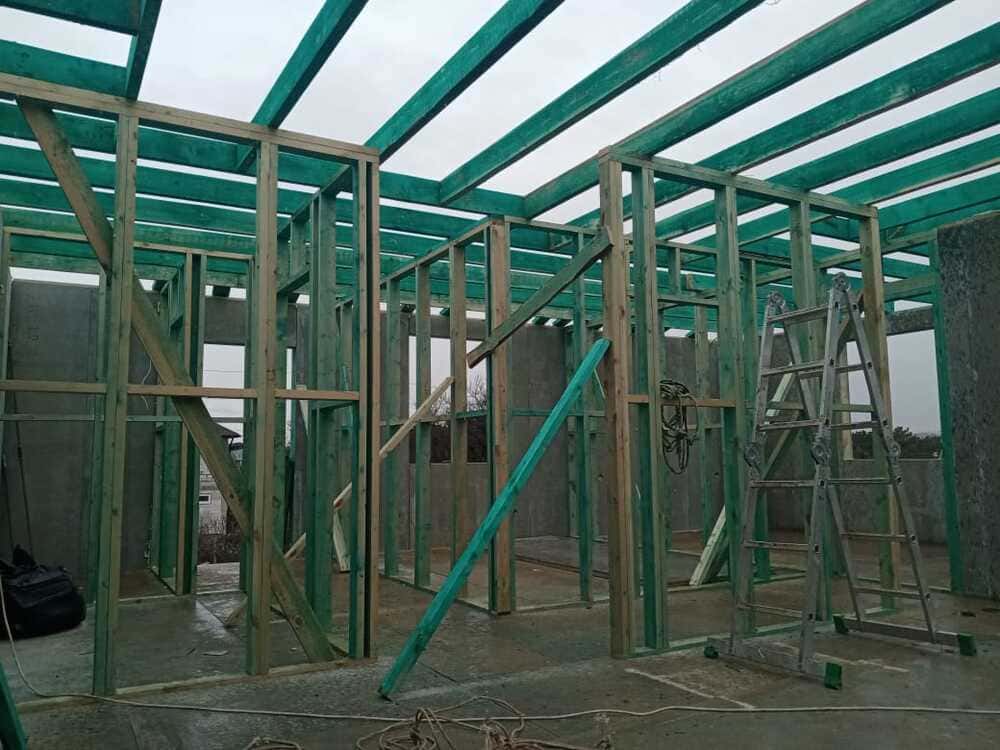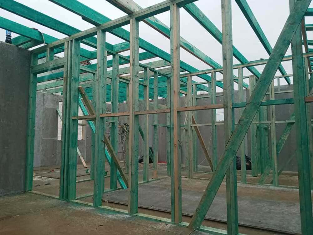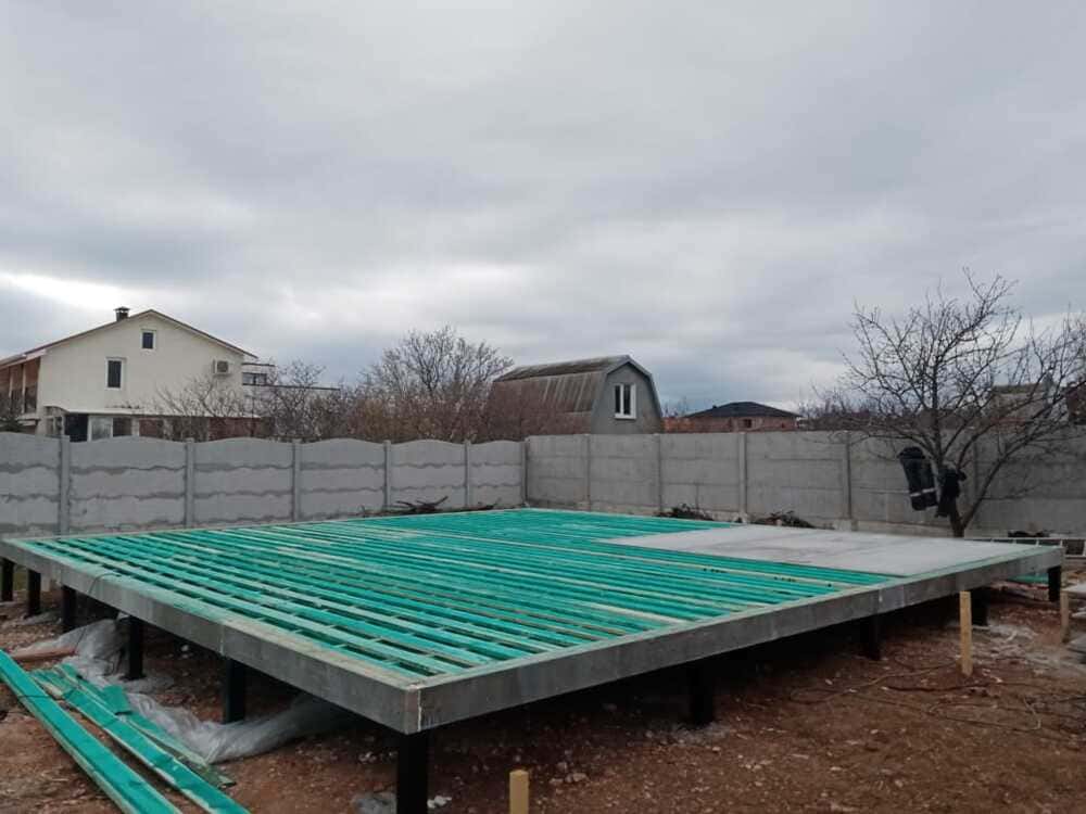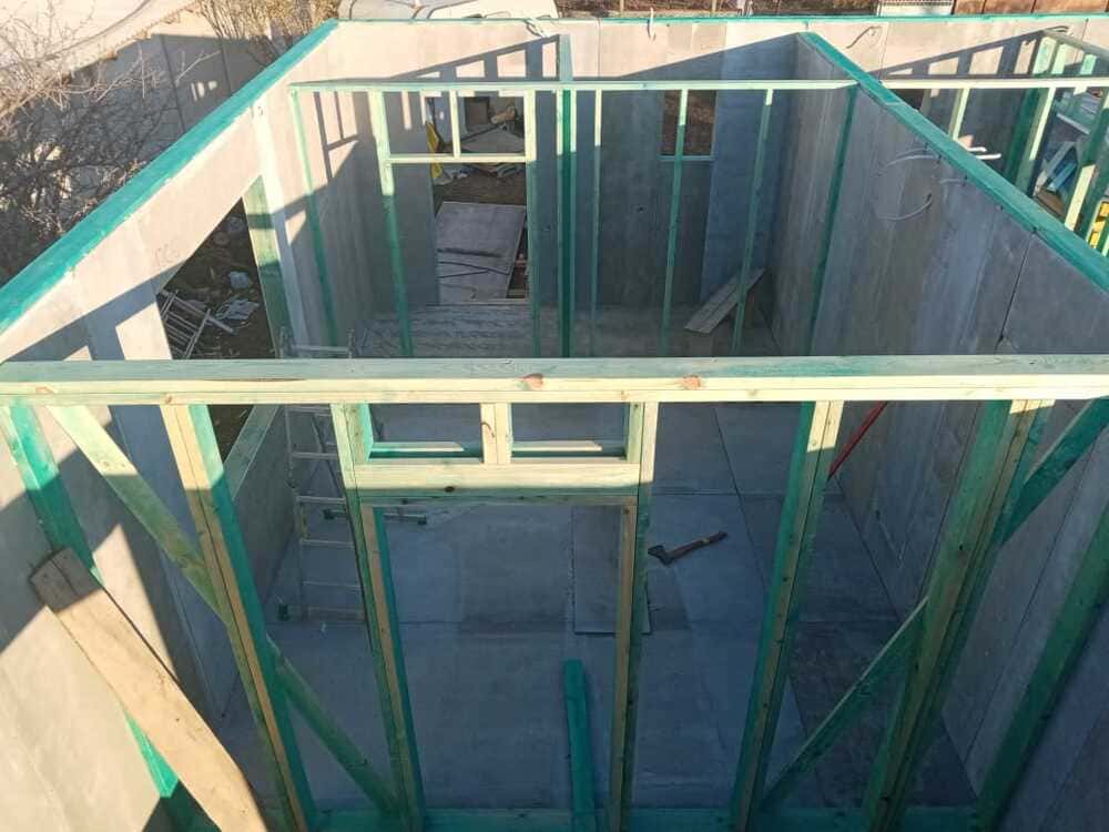Ростверк изготовлен из калиброванного клееного бруса и защищен снаружи цементно-стружечной плитой
