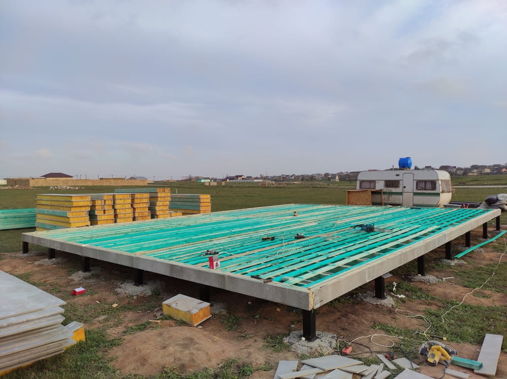 Ростверк изготовлен из калиброванного клееного бруса и защищен снаружи цементно-стружечной плитой