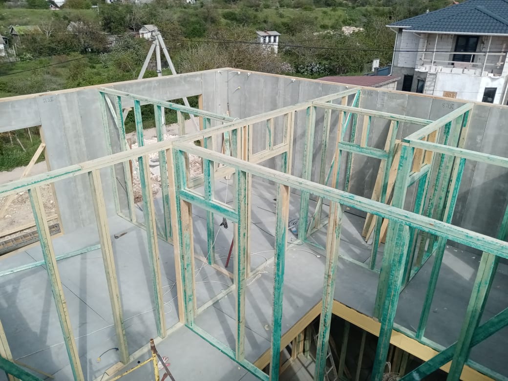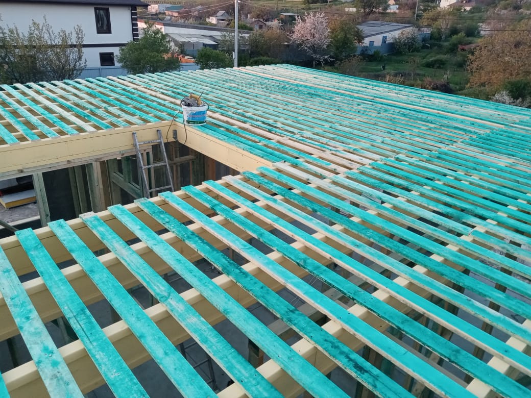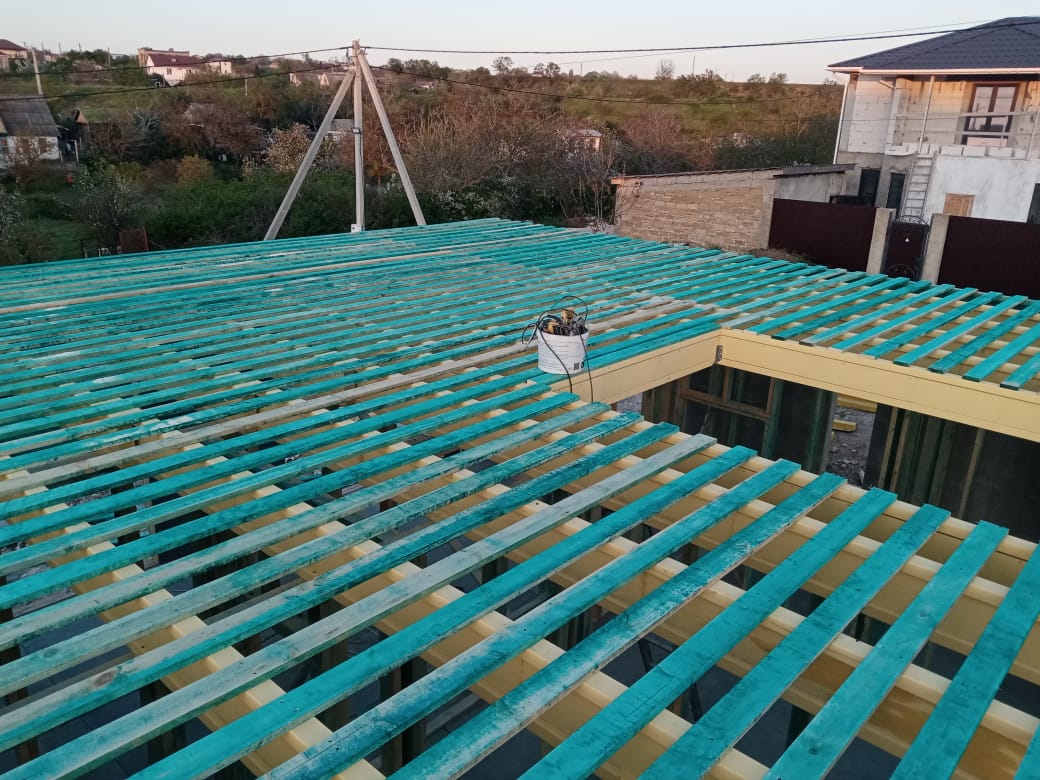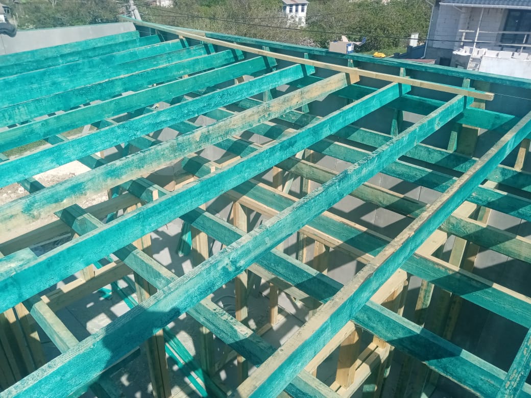 Кровля может быть построена из бруса 150х50мм или SIP панелей. В качестве кровельного материала можно использовать: металлочерепицу, битумную и керамическую черепицу. Также производим кровельные шовные сэндвич-панели.