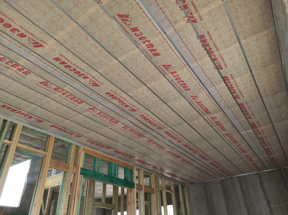 Потолок состоит из двутавровых балок 250 мм, а шаг монтажа балок - 600 мм.