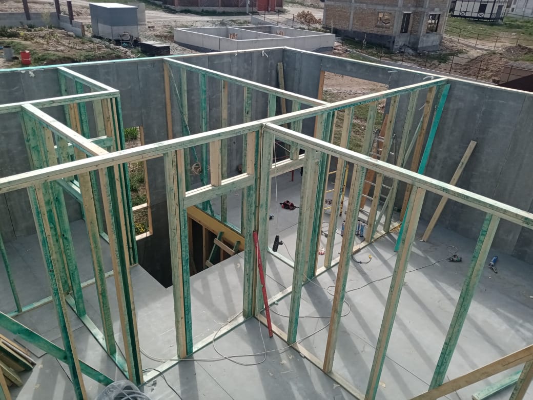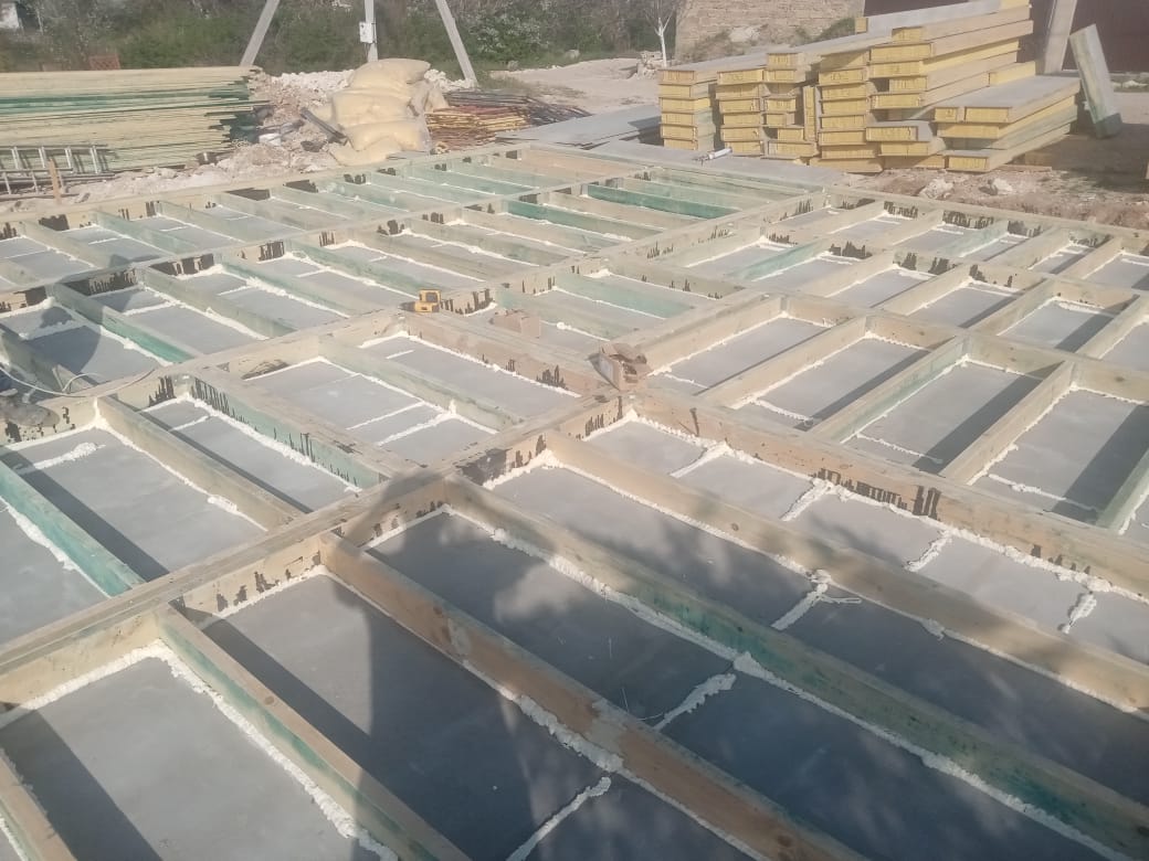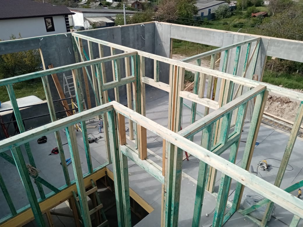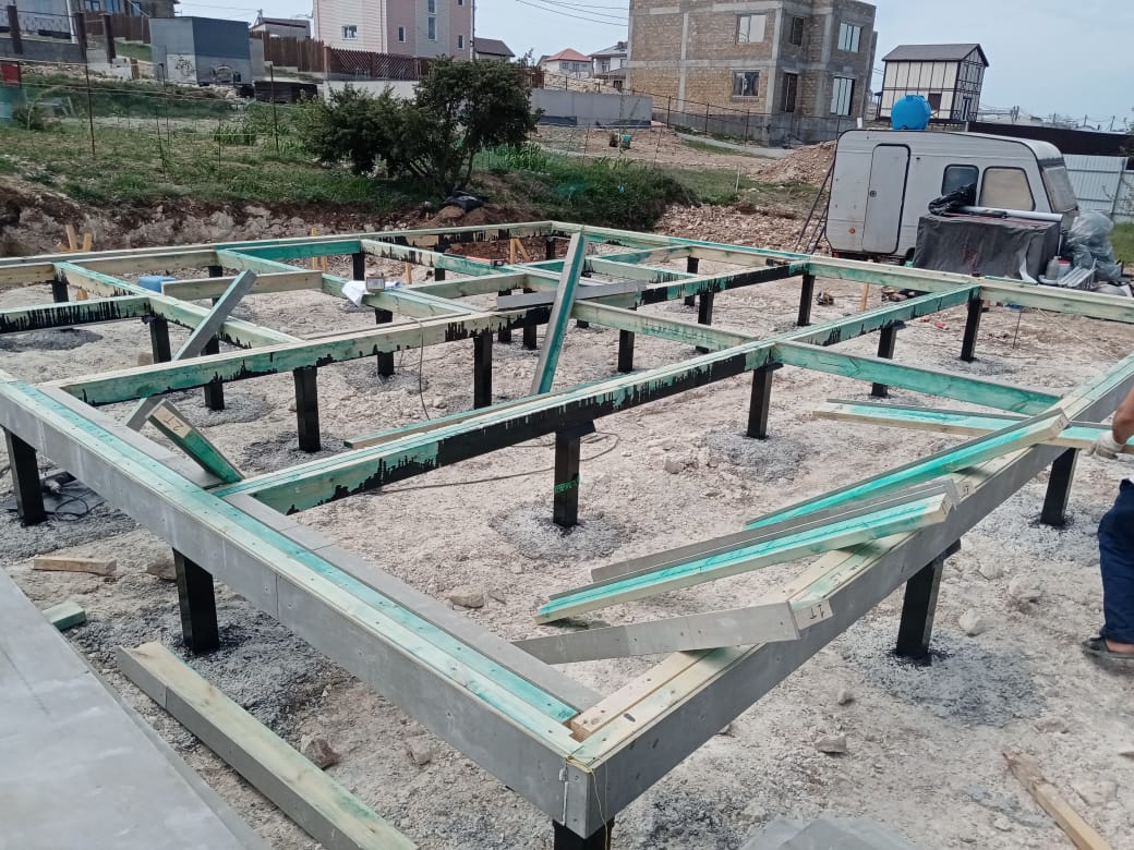 Ростверк изготовлен из калиброванного клееного бруса и защищен снаружи цементно-стружечной плитой
