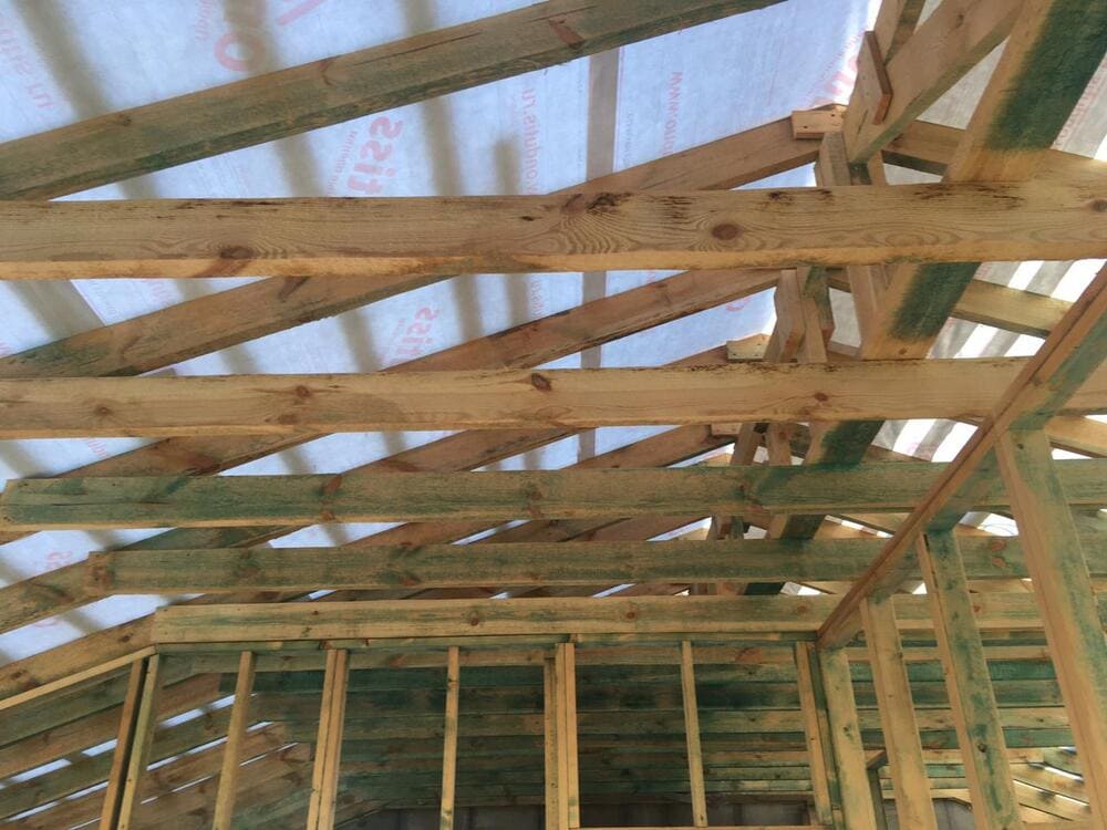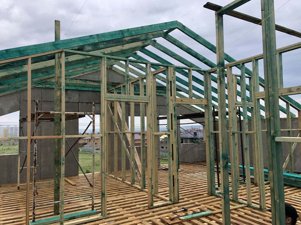 Кровля может быть построена из бруса 150х50мм или SIP панелей. В качестве кровельного материала можно использовать: металлочерепицу, битумную и керамическую черепицу. Также производим кровельные шовные сэндвич-панели.