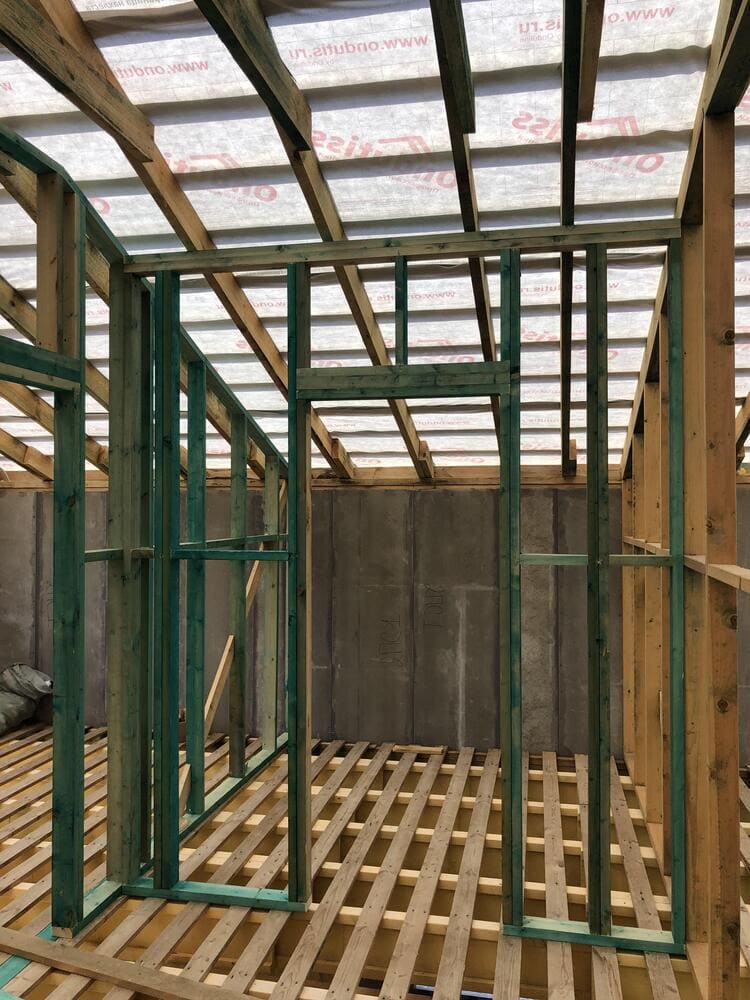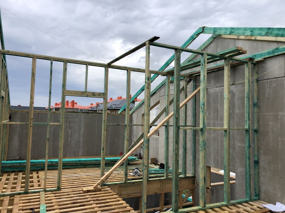 Ростверк изготовлен из калиброванного клееного бруса и защищен снаружи цементно-стружечной плитой