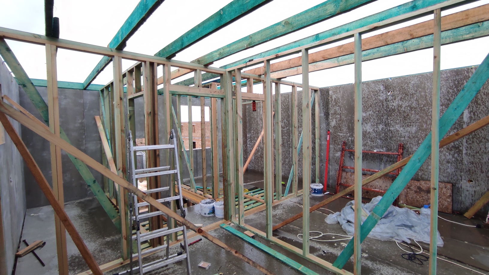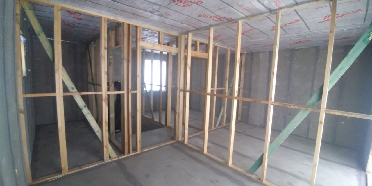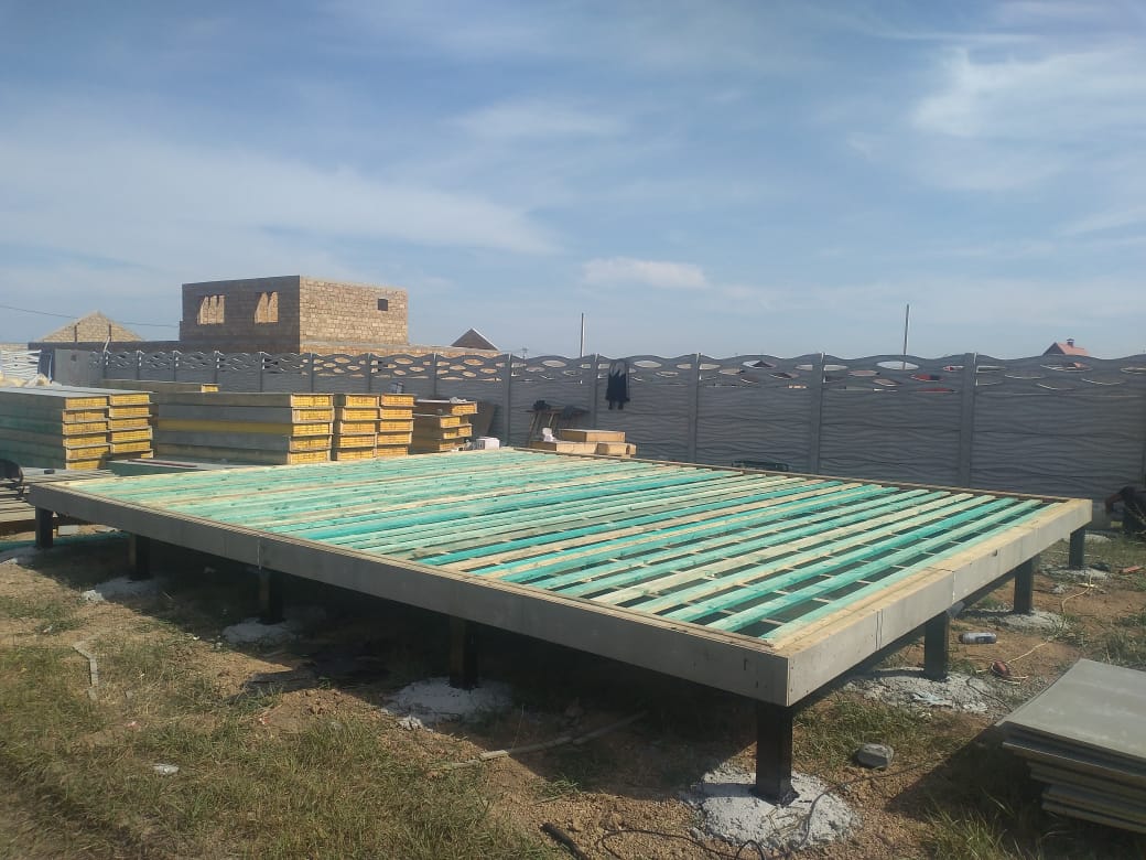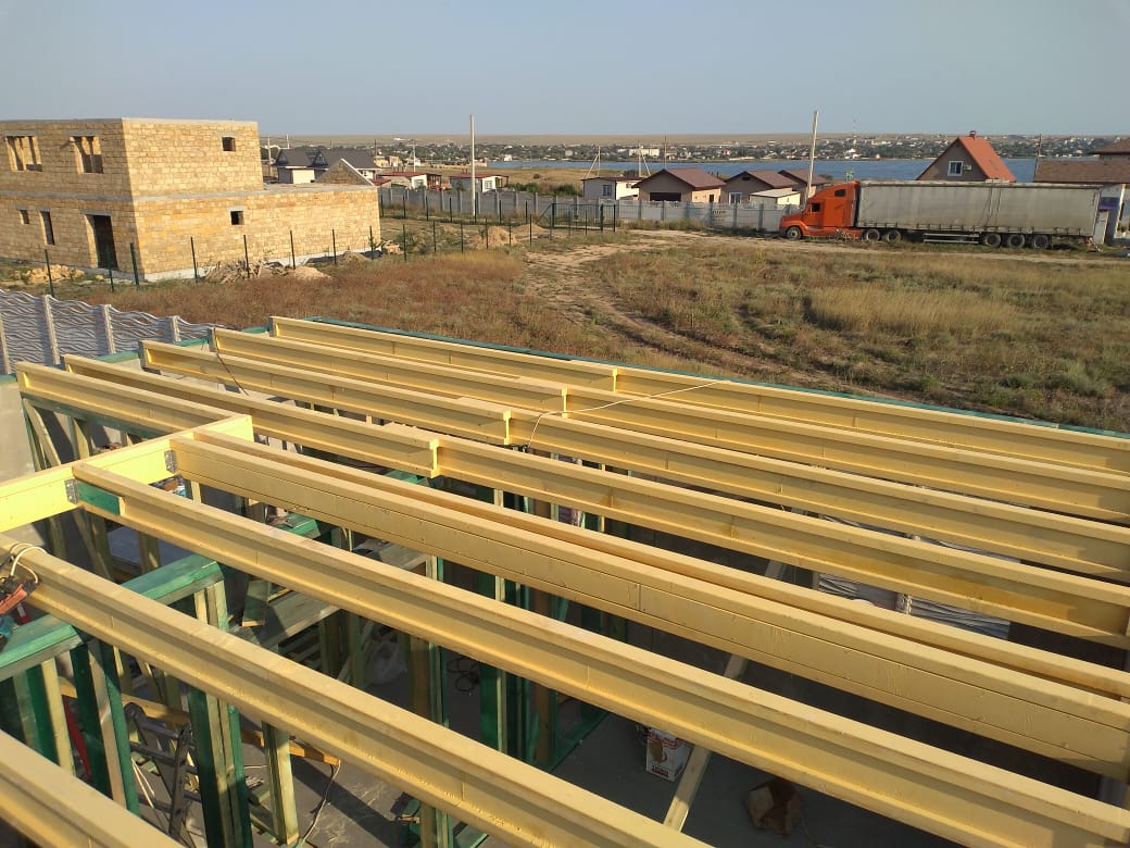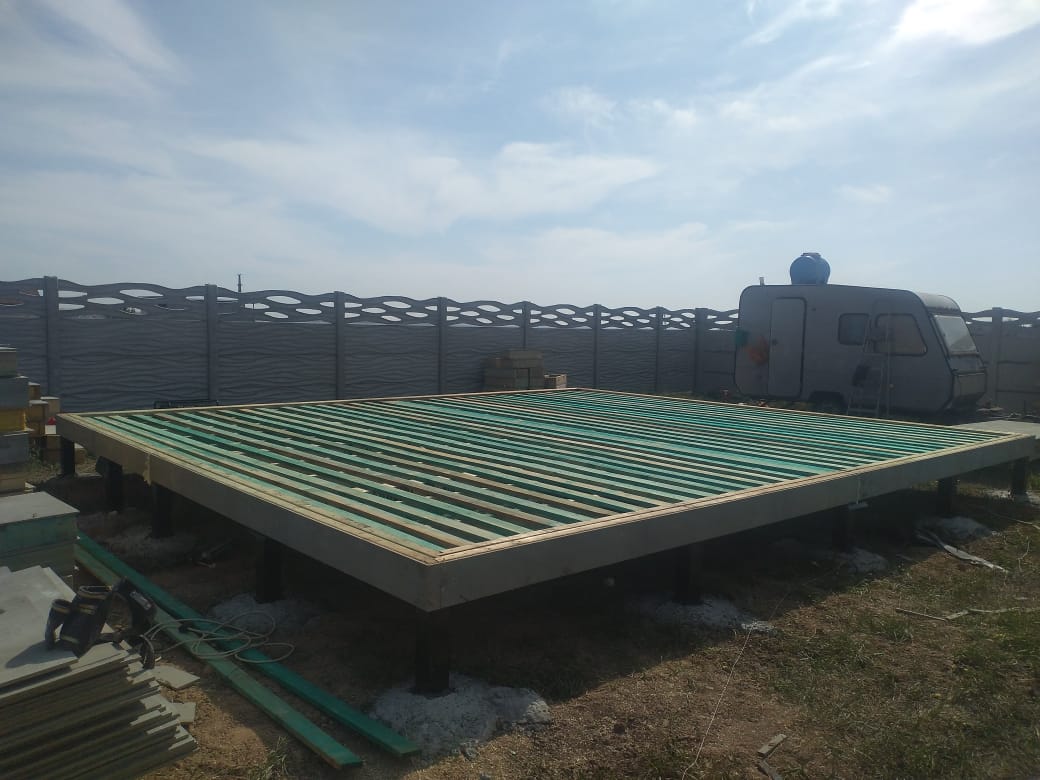 Ростверк изготовлен из калиброванного клееного бруса и защищен снаружи цементно-стружечной плитой