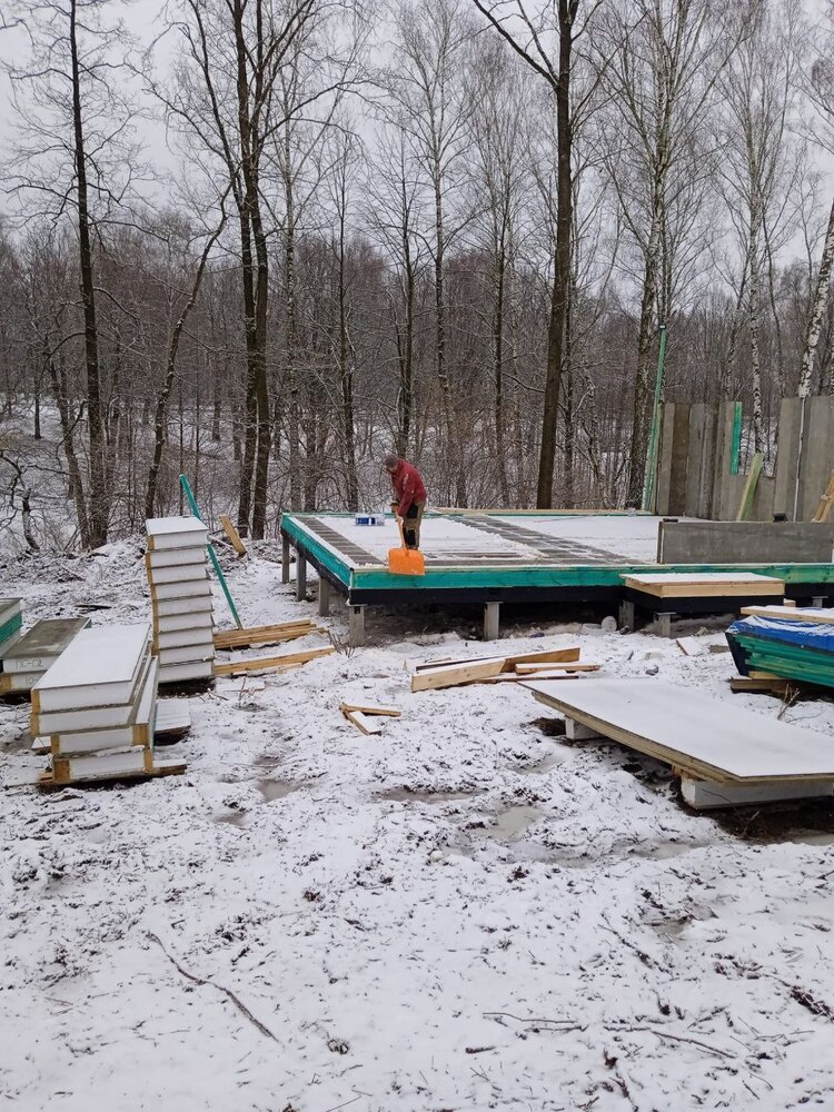 Ростверк изготовлен из калиброванного клееного бруса и защищен снаружи цементно-стружечной плитой