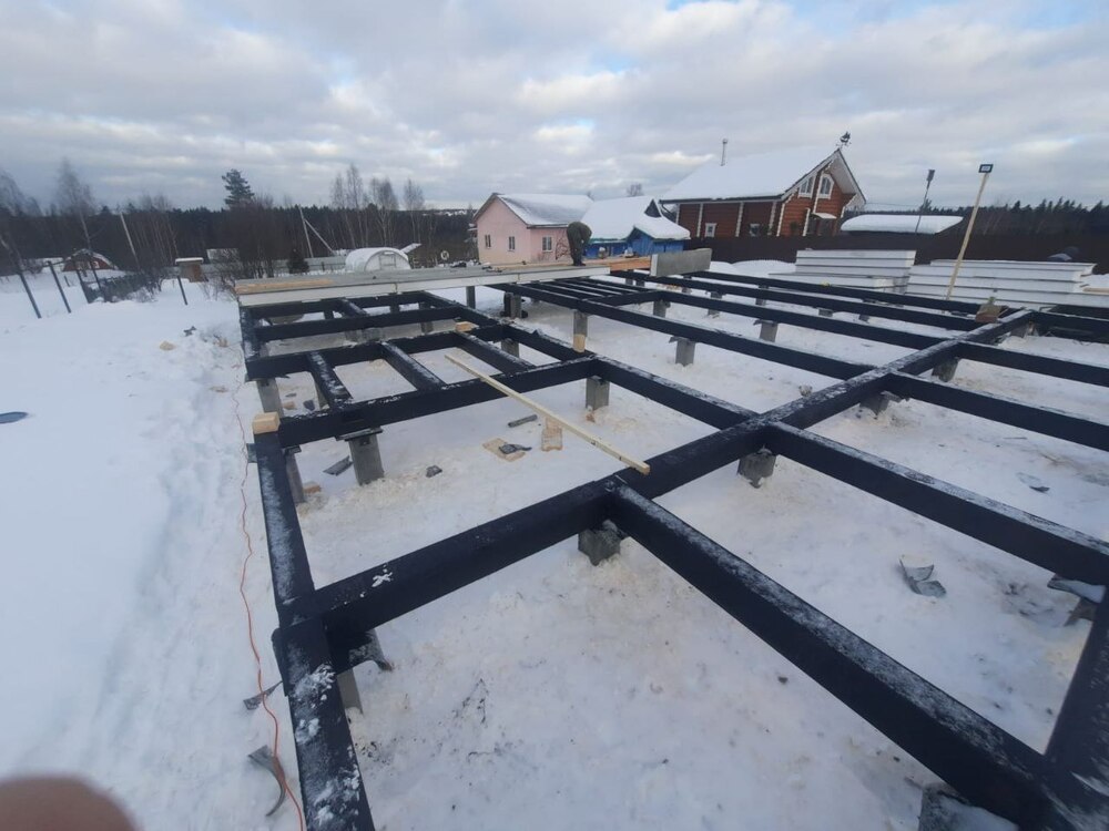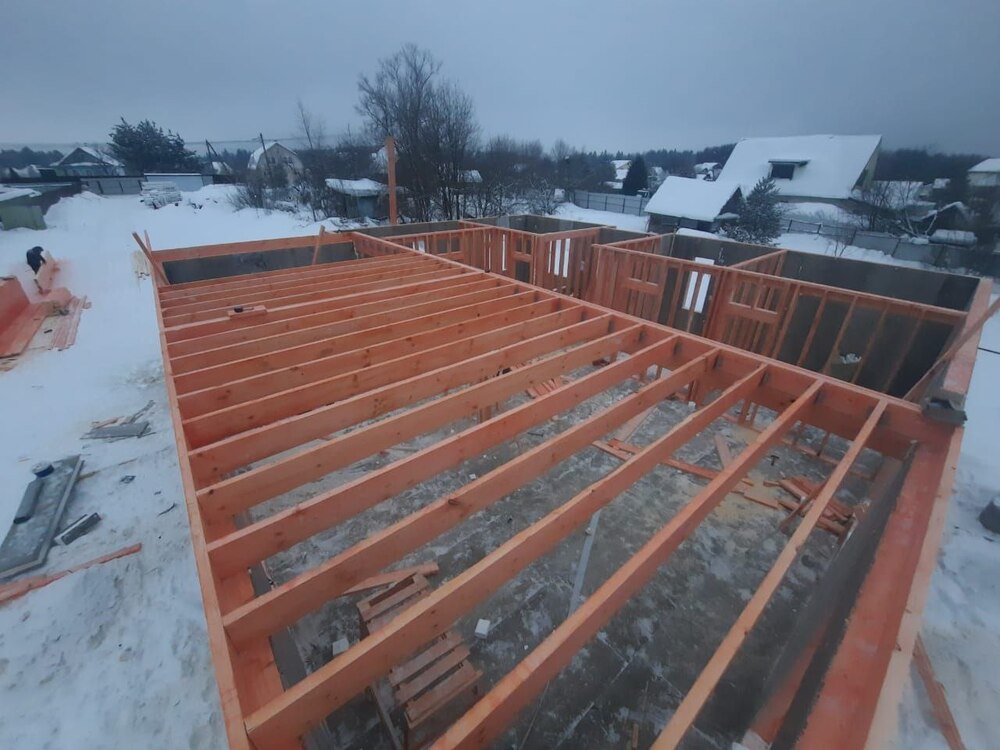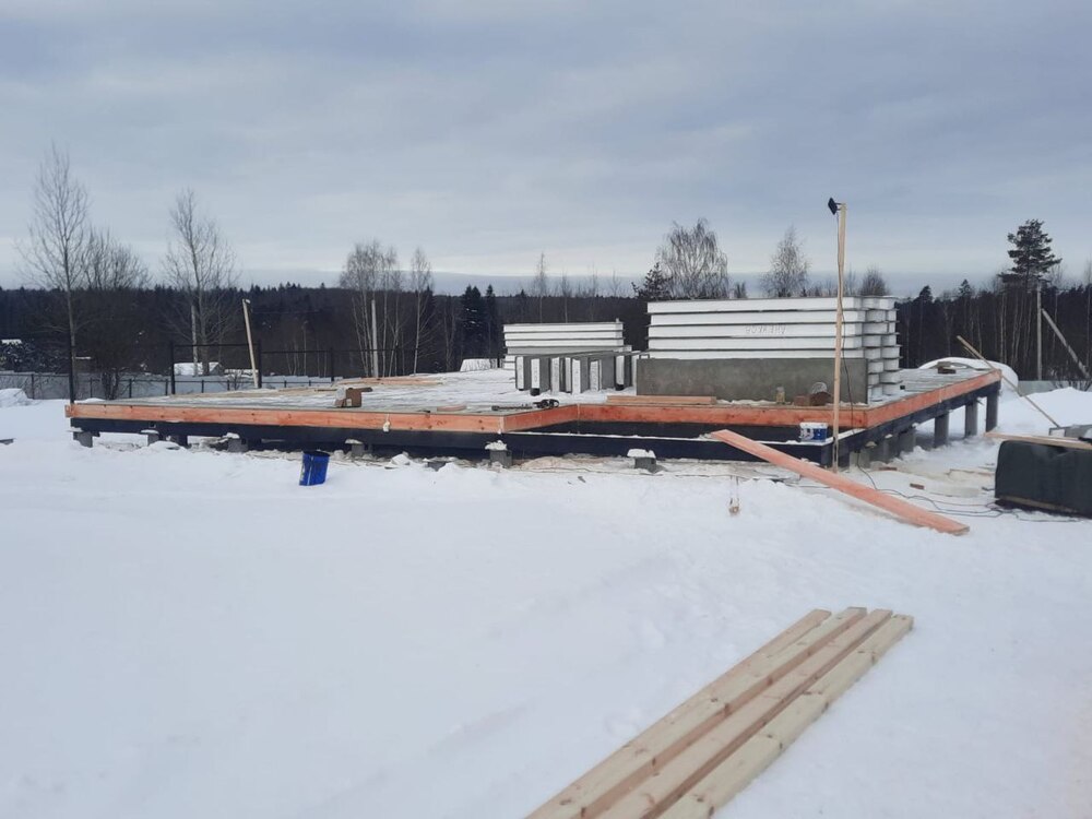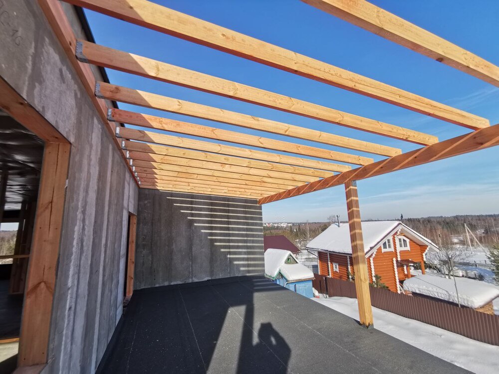 Ростверк изготовлен из калиброванного клееного бруса и защищен снаружи цементно-стружечной плитой