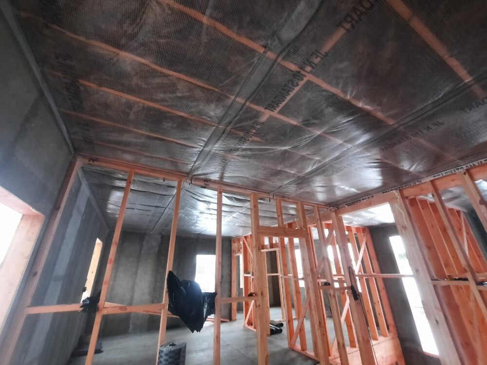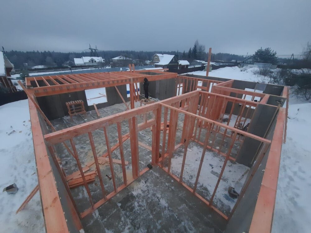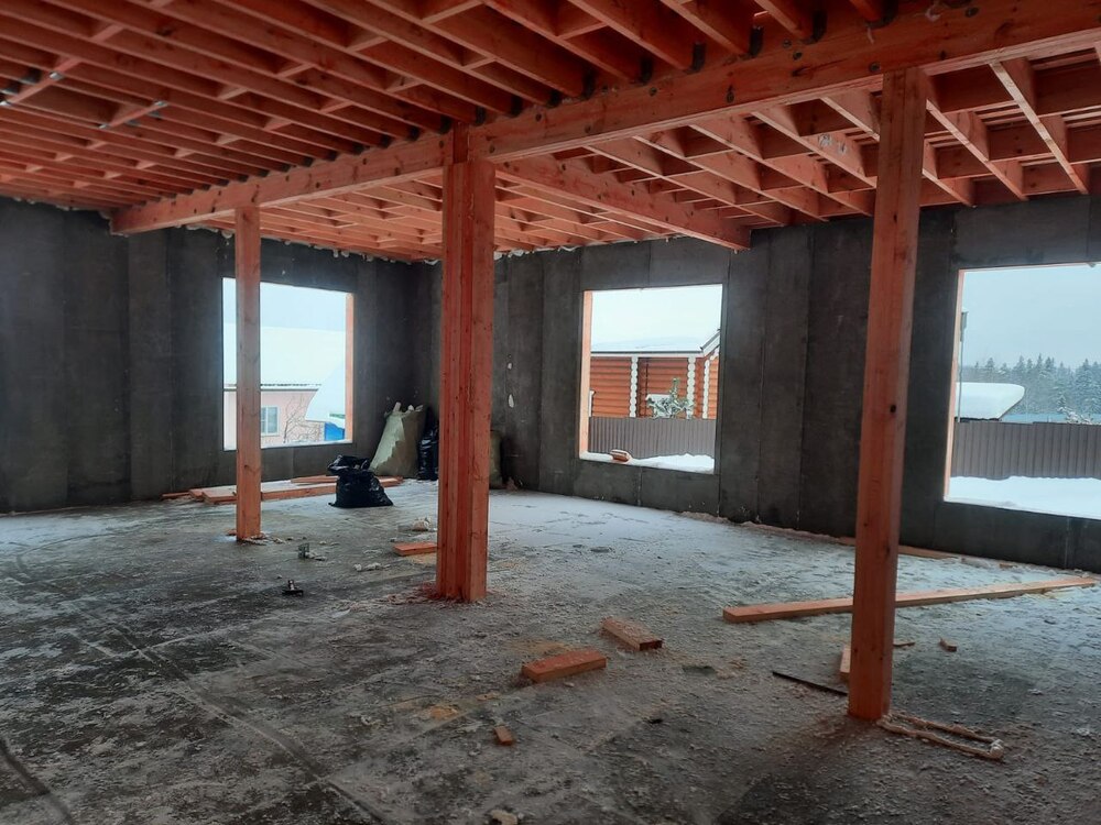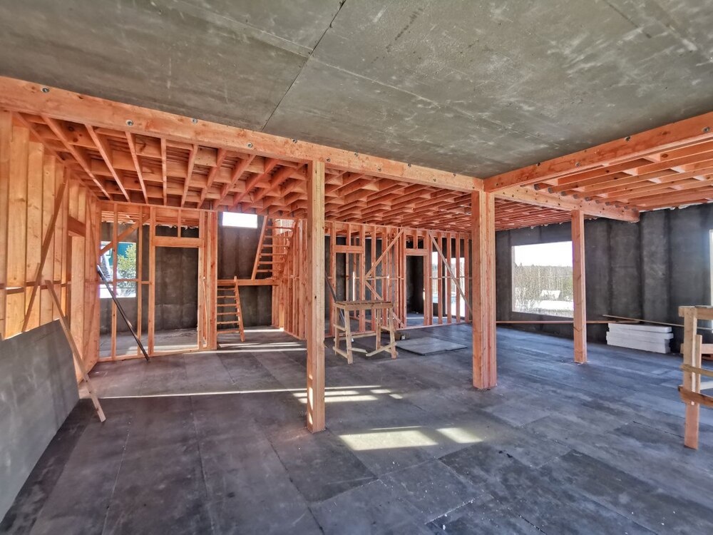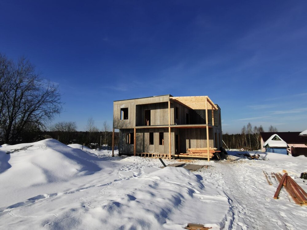 Ростверк изготовлен из калиброванного клееного бруса и защищен снаружи цементно-стружечной плитой
