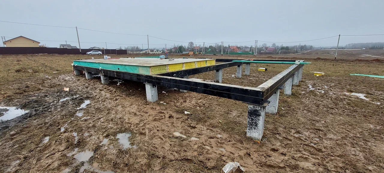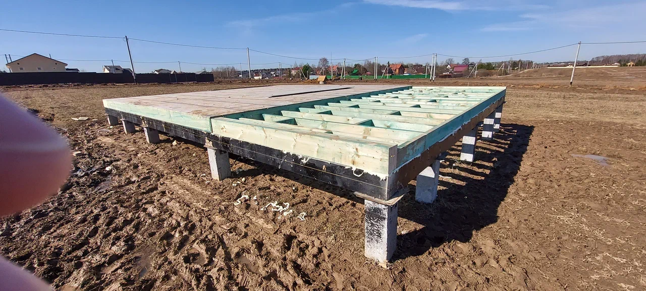 Ростверк изготовлен из калиброванного клееного бруса и защищен снаружи цементно-стружечной плитой