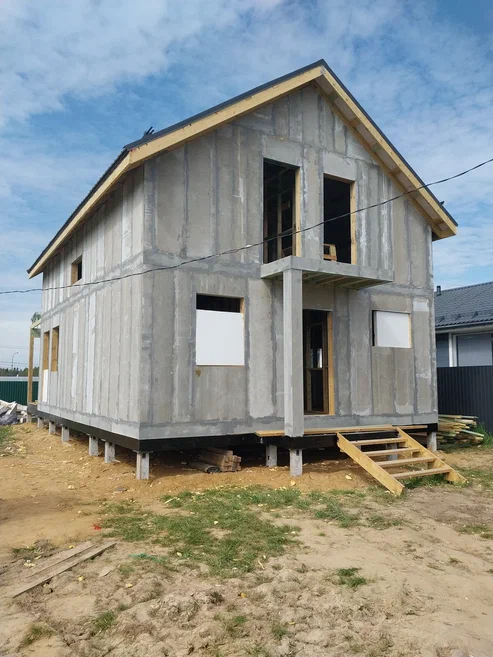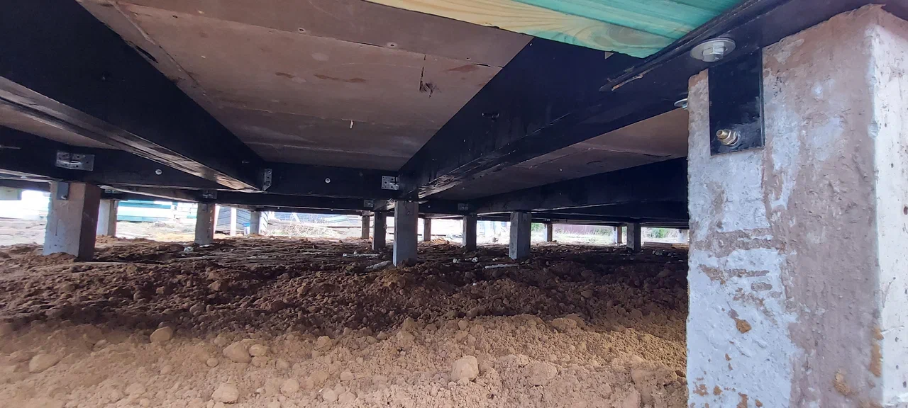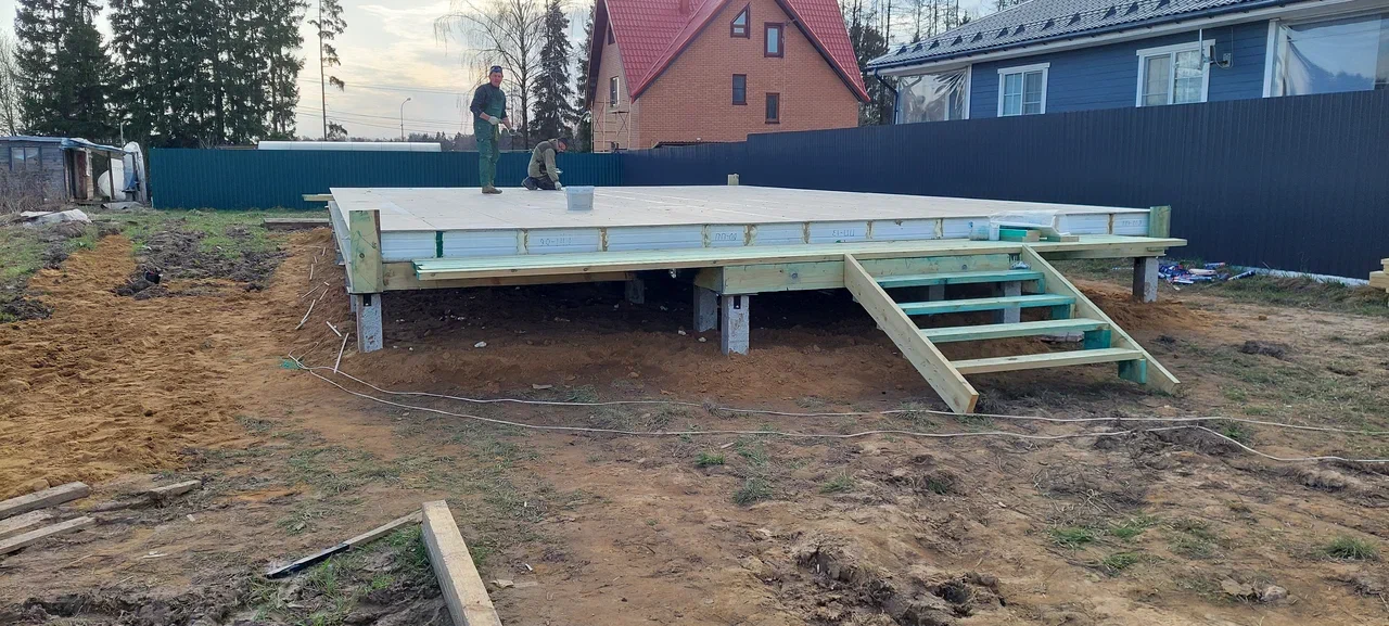 Ростверк изготовлен из калиброванного клееного бруса и защищен снаружи цементно-стружечной плитой