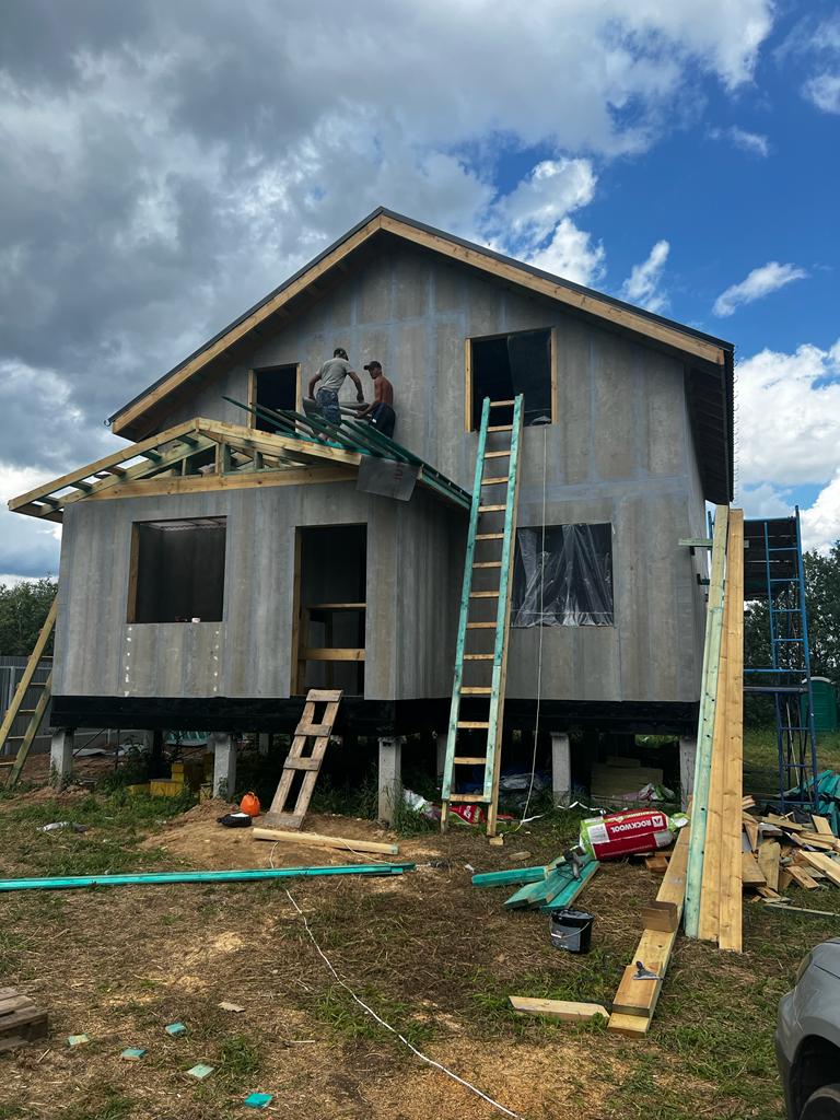 Кровля может быть построена из бруса 150х50мм или SIP панелей. В качестве кровельного материала можно использовать: металлочерепицу, битумную и керамическую черепицу. Также производим кровельные шовные сэндвич-панели.