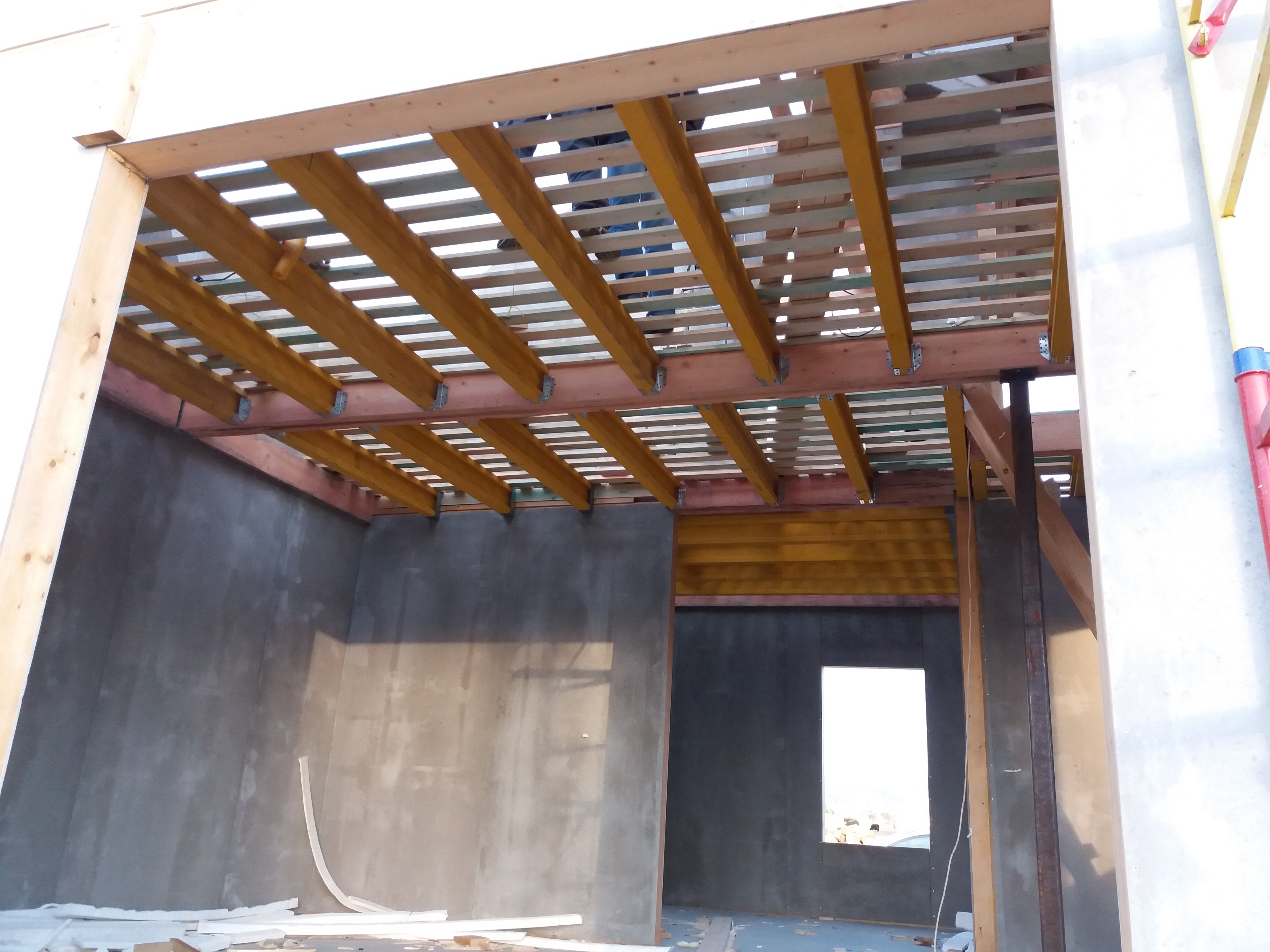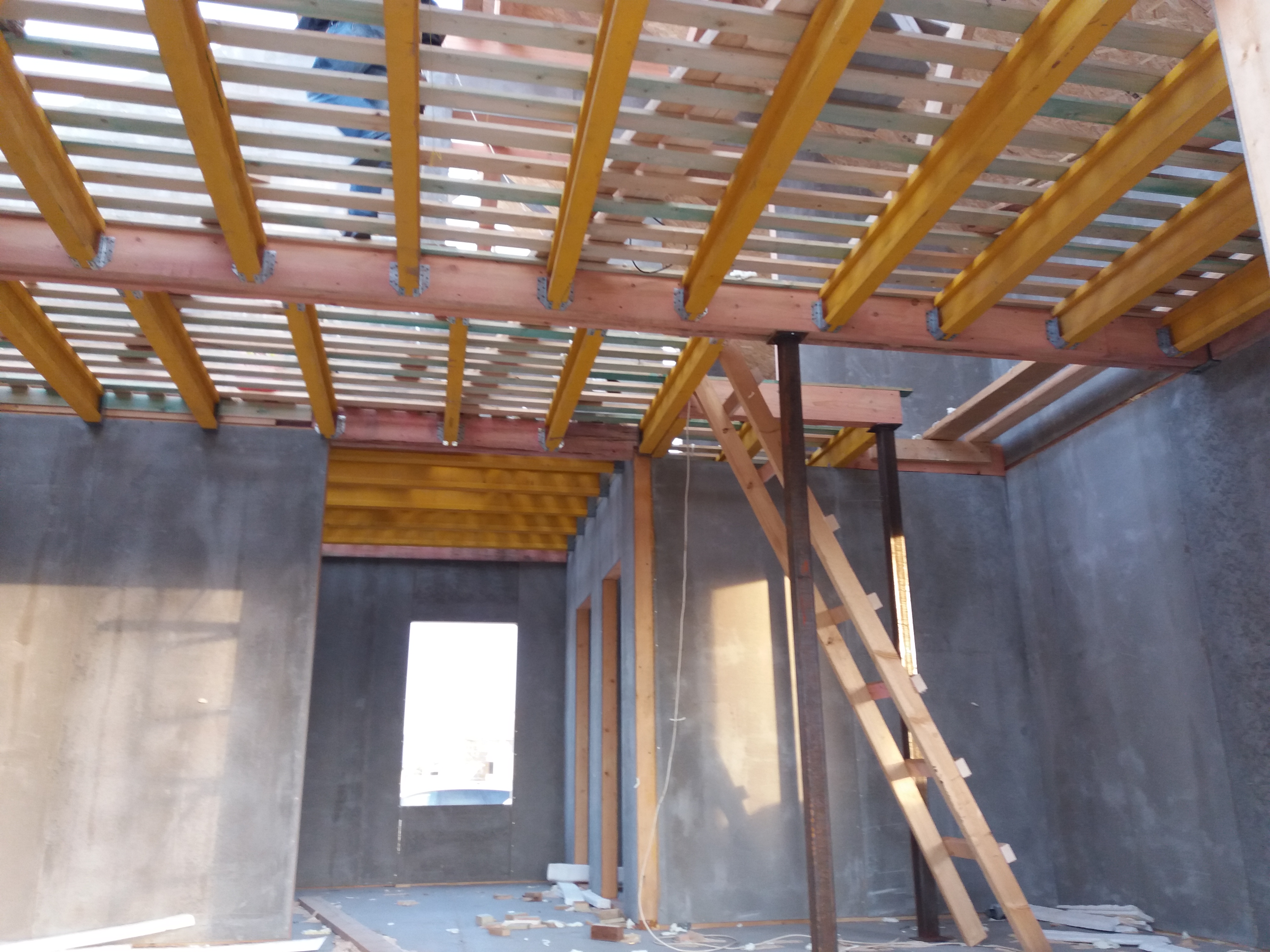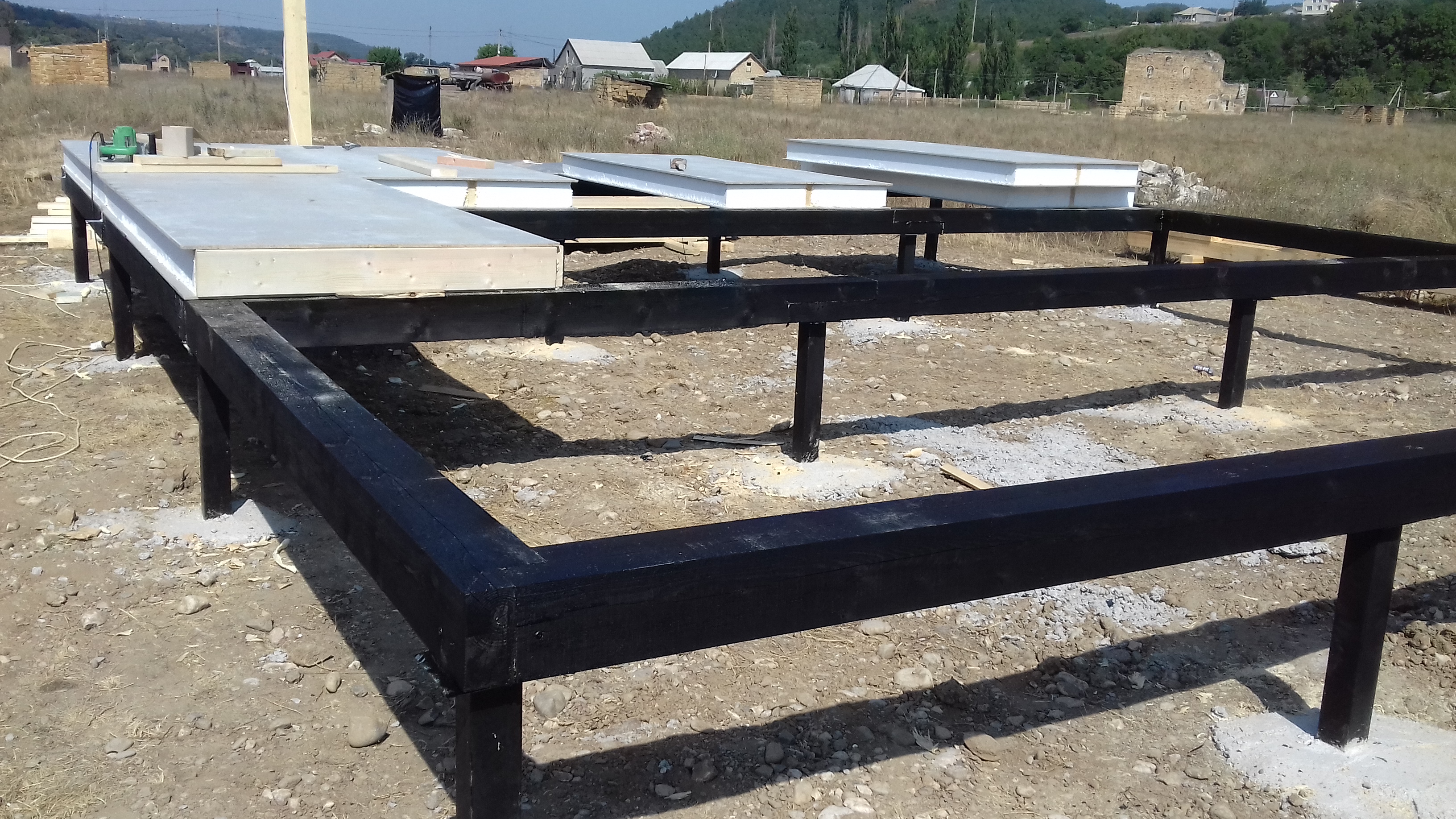 Ростверк изготовлен из калиброванного клееного бруса и защищен снаружи цементно-стружечной плитой