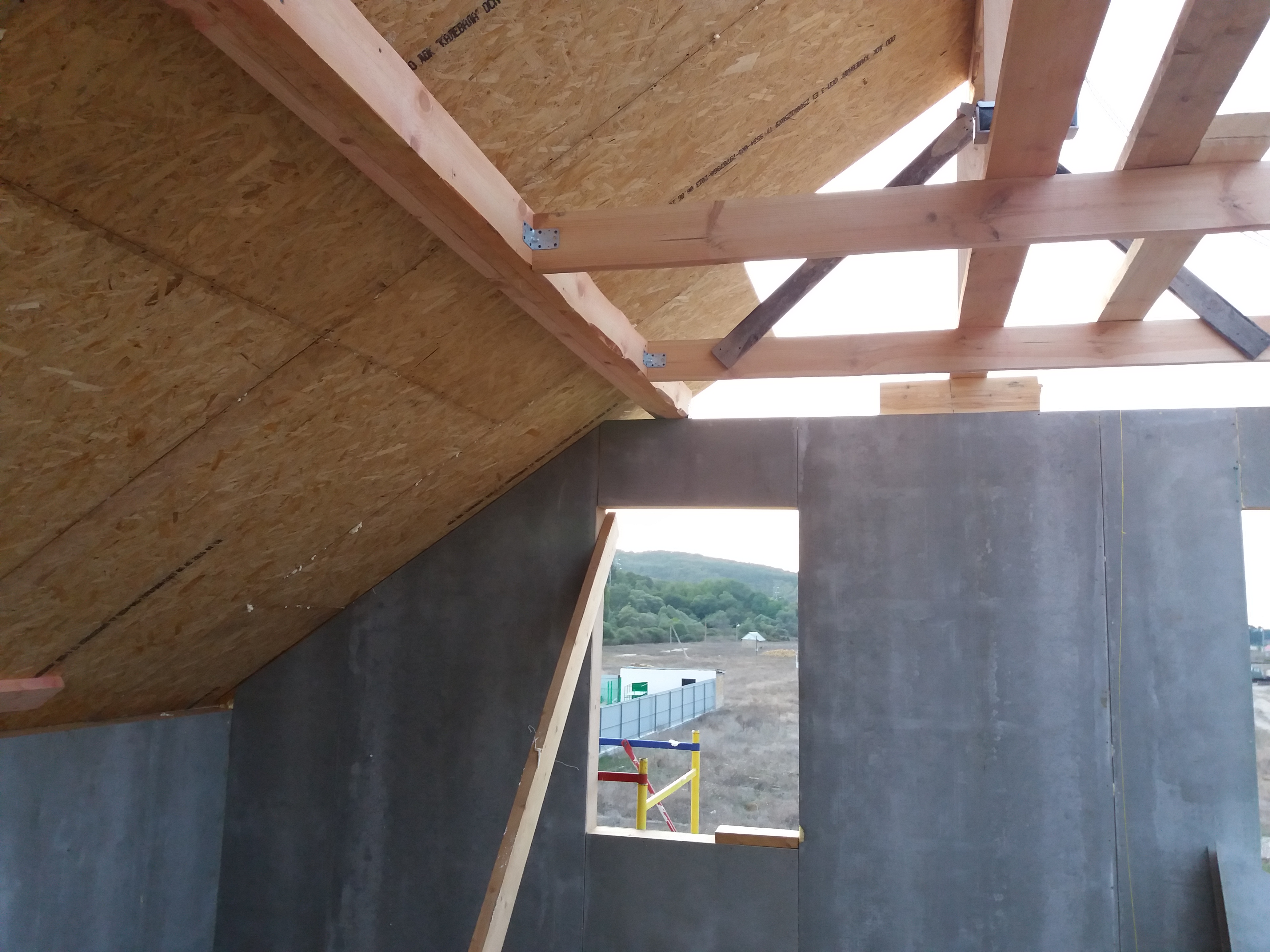 Кровля может быть построена из бруса 150х50мм или SIP панелей. В качестве кровельного материала можно использовать: металлочерепицу, битумную и керамическую черепицу. Также производим кровельные шовные сэндвич-панели.