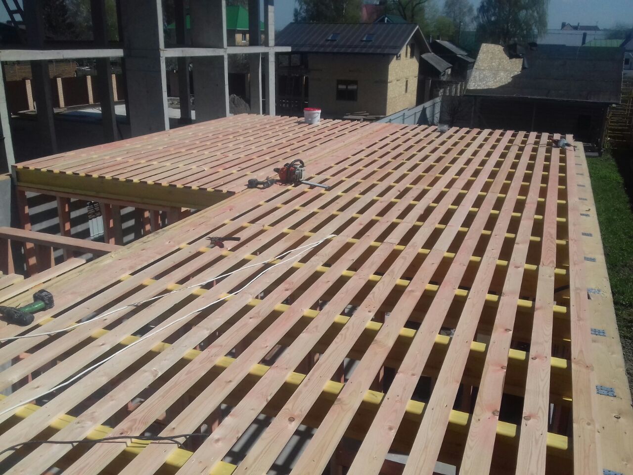 Ростверк изготовлен из калиброванного клееного бруса и защищен снаружи цементно-стружечной плитой