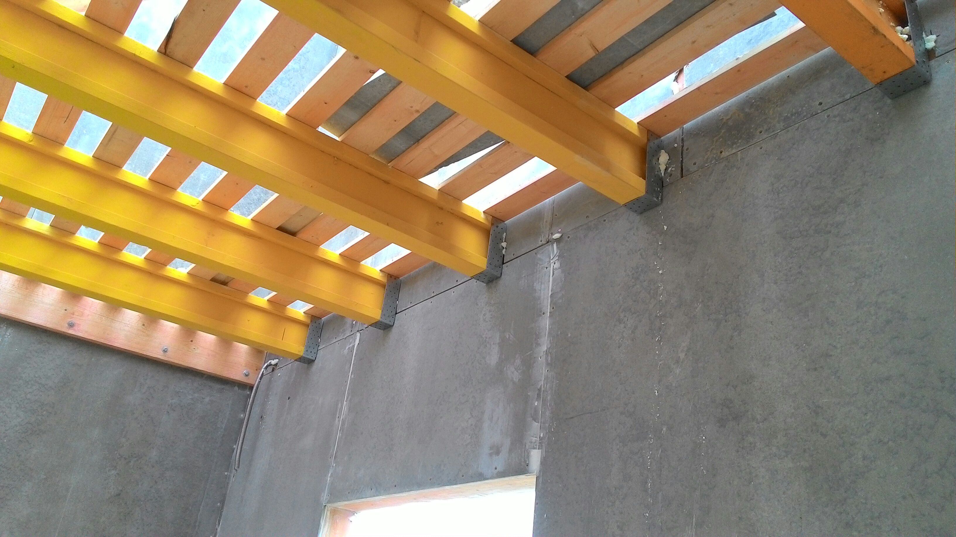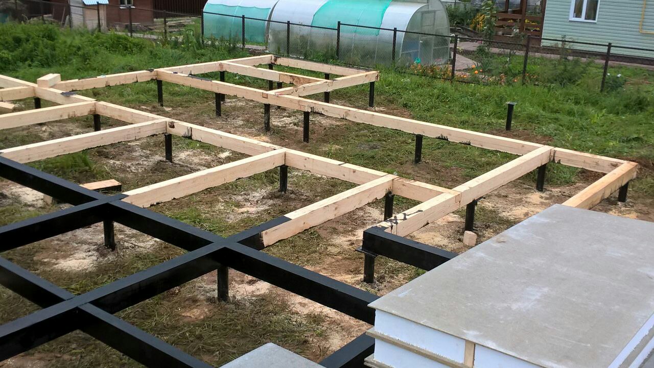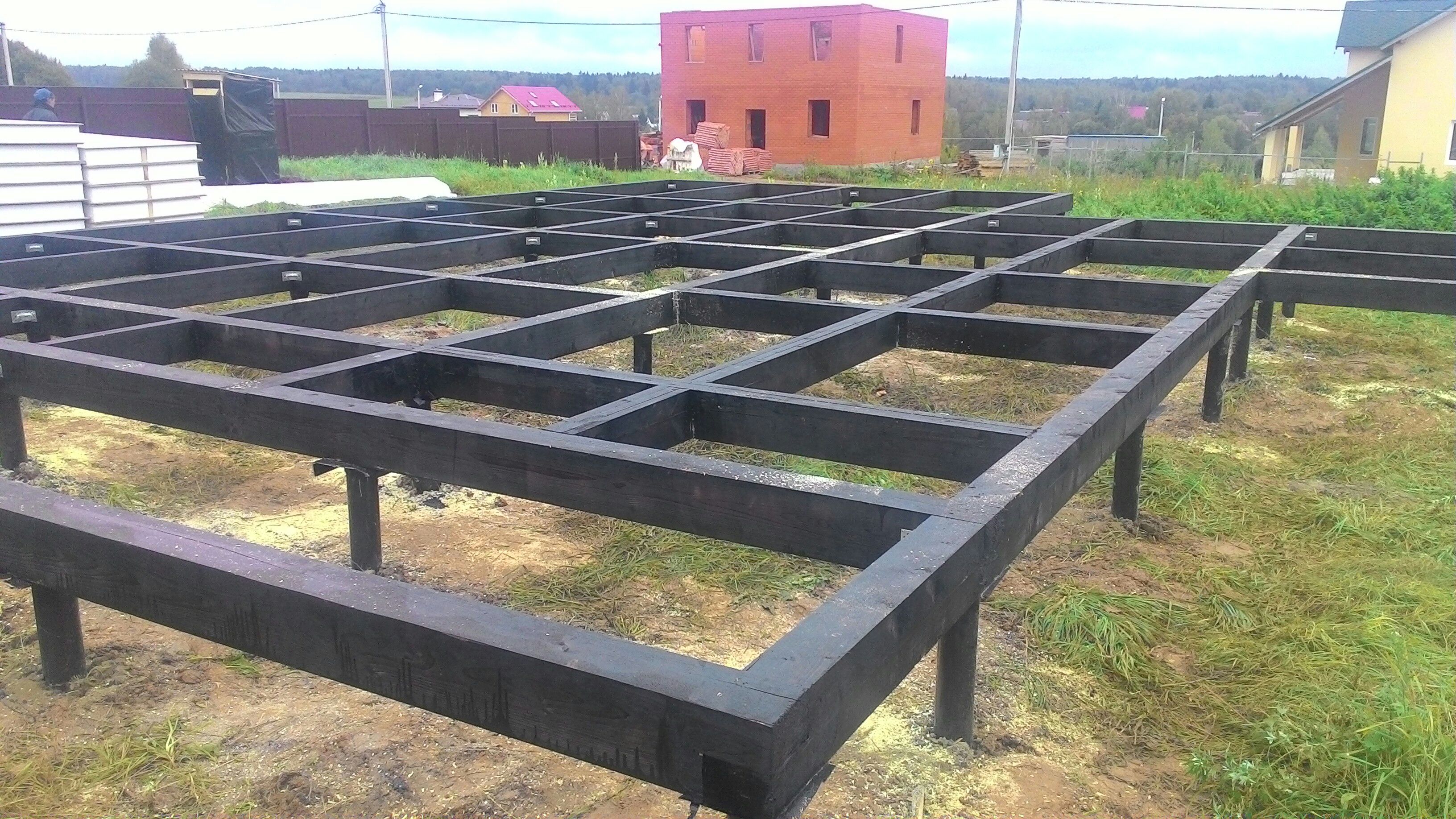 Ростверк изготовлен из калиброванного клееного бруса и защищен снаружи цементно-стружечной плитой