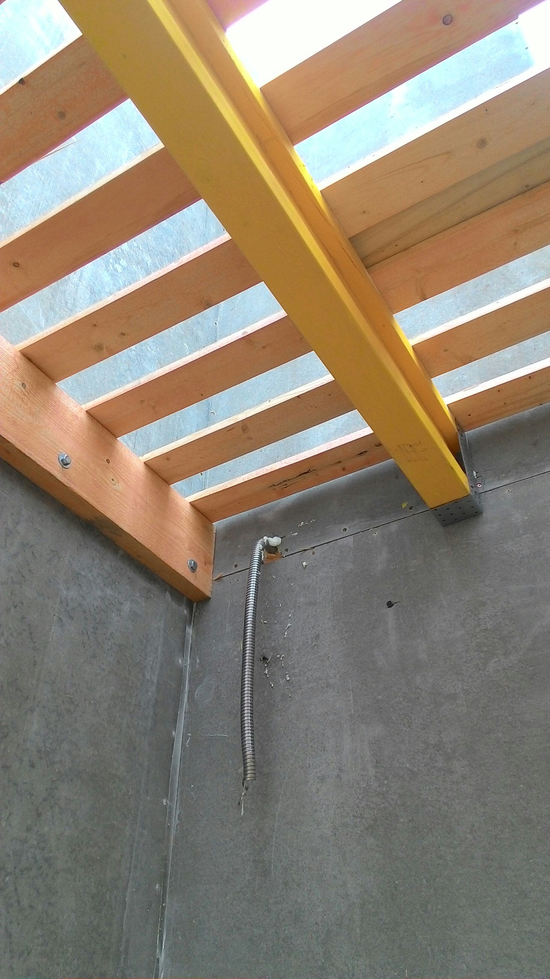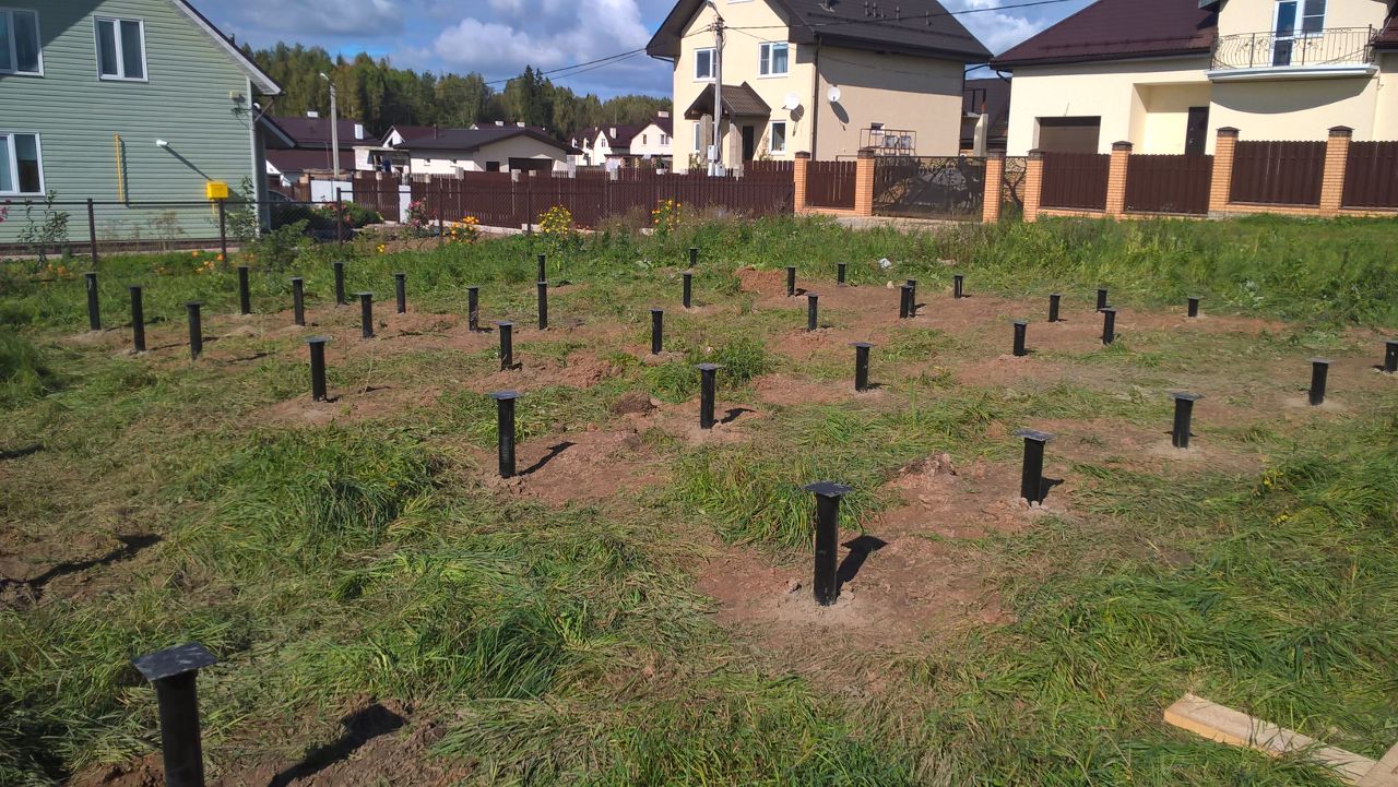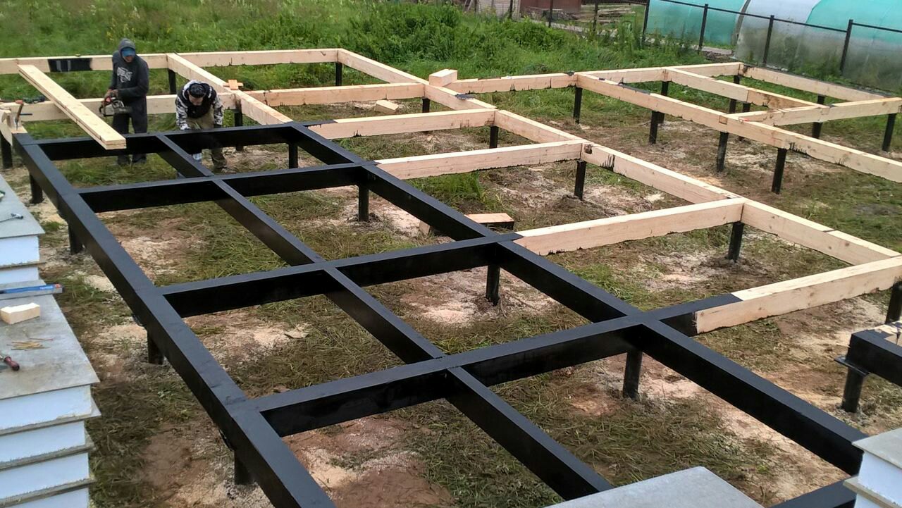 Ростверк изготовлен из калиброванного клееного бруса и защищен снаружи цементно-стружечной плитой