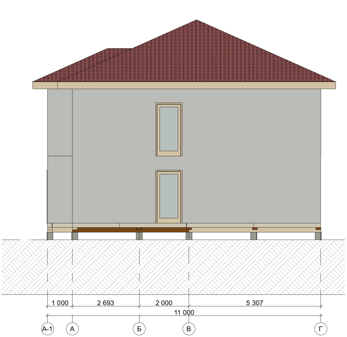 Тип фундамента: Деревянный ростверк на буронабивных сваях диаметром 108мм\300мм\2500мм, погружаемых ниже максимальной глубины промерзания грунта (сечение ростверка 200х200мм).