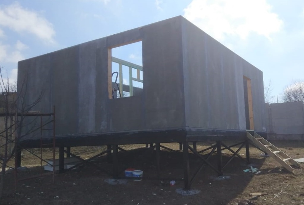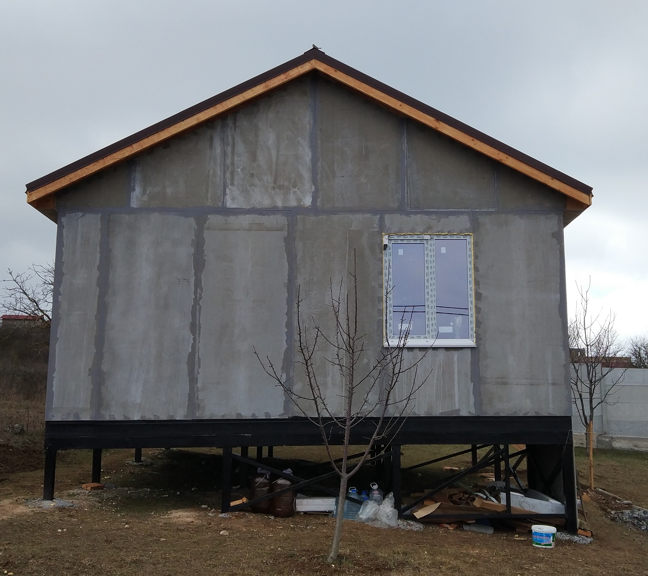 Ростверк изготовлен из калиброванного клееного бруса и защищен снаружи цементно-стружечной плитой