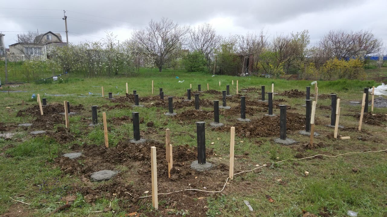 Ростверк изготовлен из калиброванного клееного бруса и защищен снаружи цементно-стружечной плитой