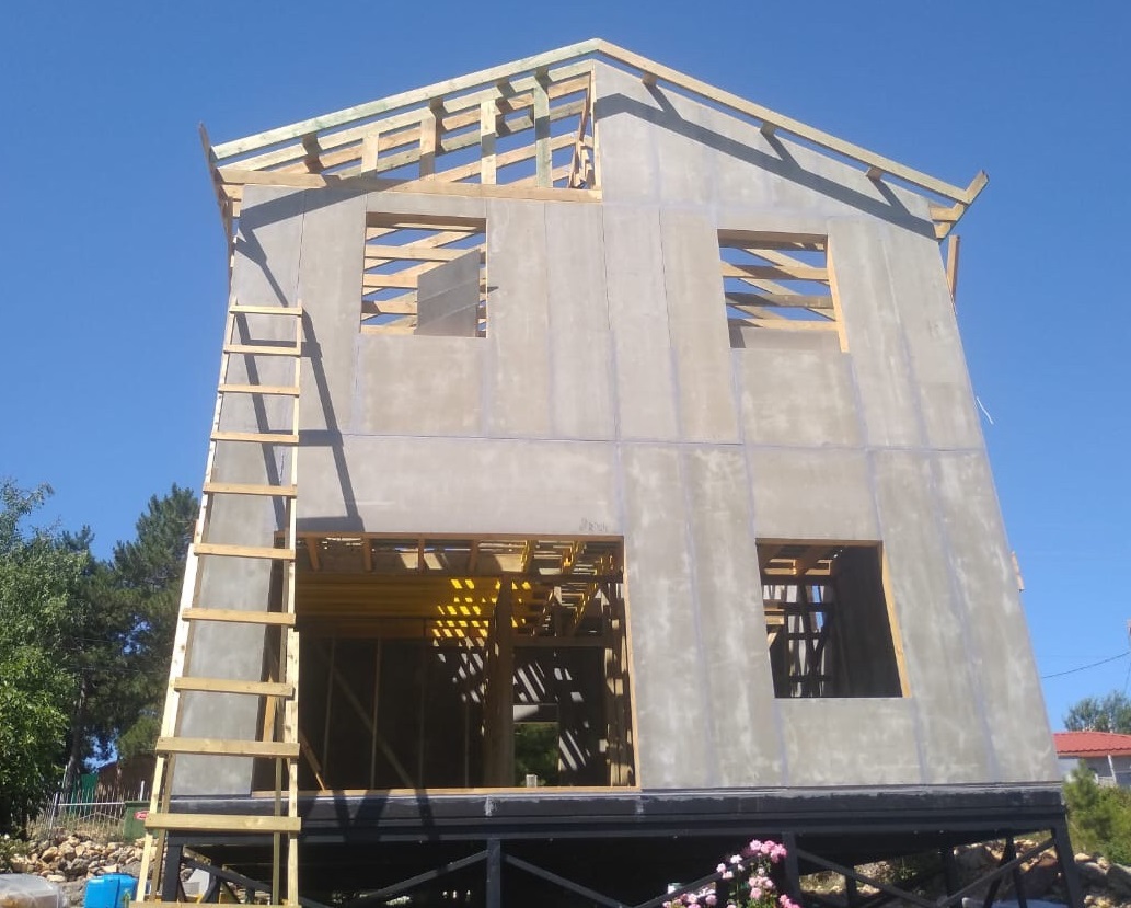 Ростверк изготовлен из калиброванного клееного бруса и защищен снаружи цементно-стружечной плитой