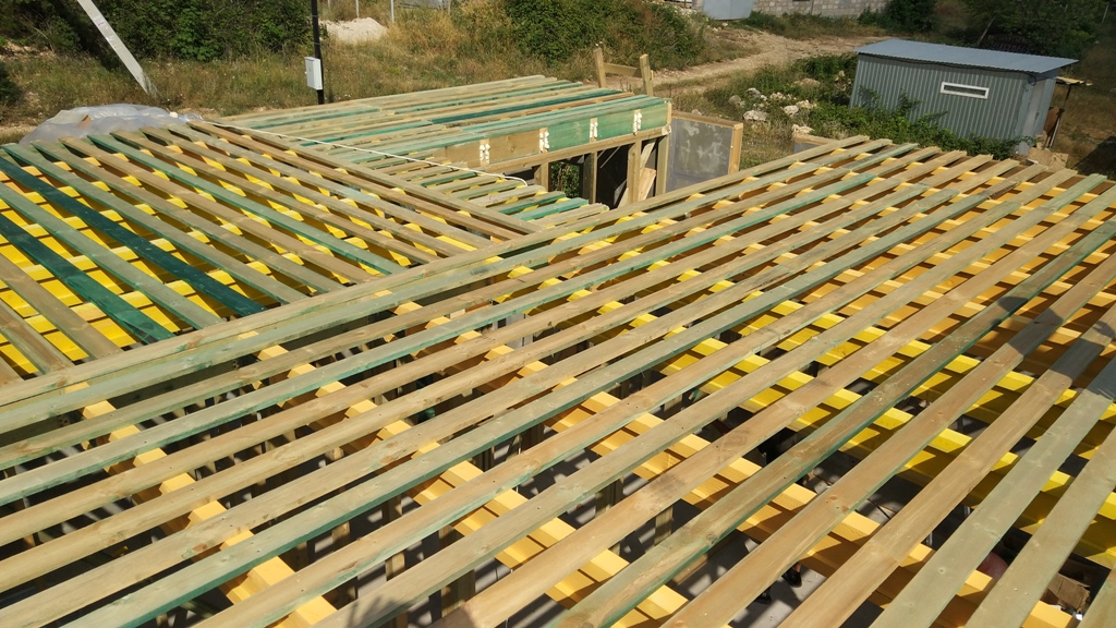Кровля может быть построена из бруса 150х50мм или SIP панелей. В качестве кровельного материала можно использовать: металлочерепицу, битумную и керамическую черепицу. Также производим кровельные шовные сэндвич-панели.