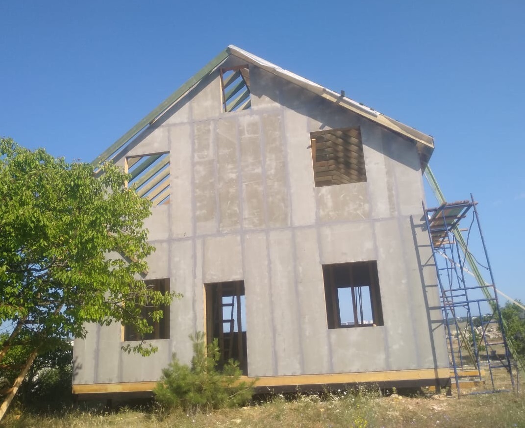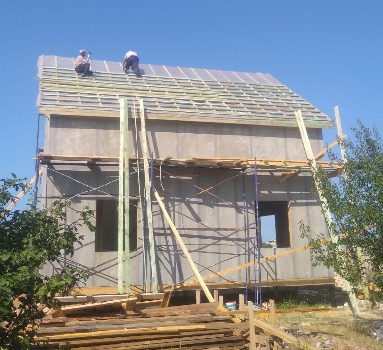 Кровля может быть построена из бруса 150х50мм или SIP панелей. В качестве кровельного материала можно использовать: металлочерепицу, битумную и керамическую черепицу. Также производим кровельные шовные сэндвич-панели.