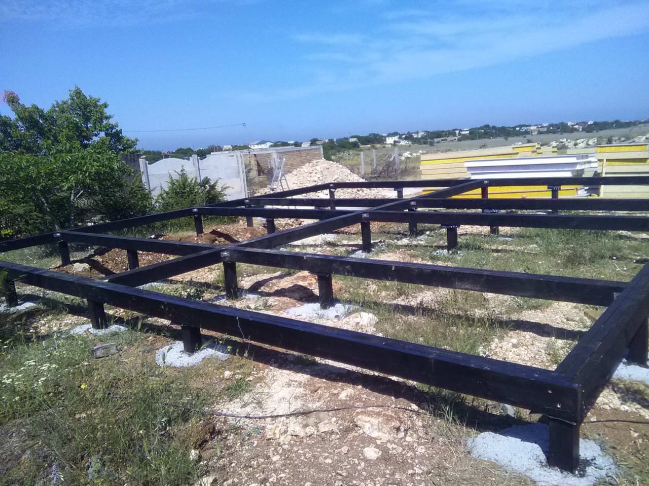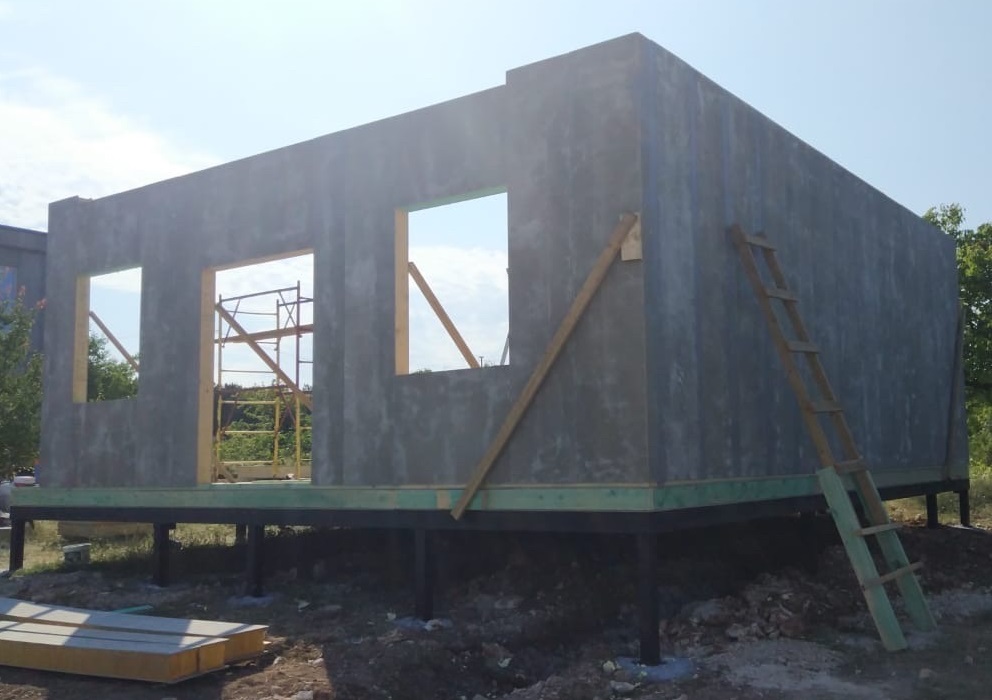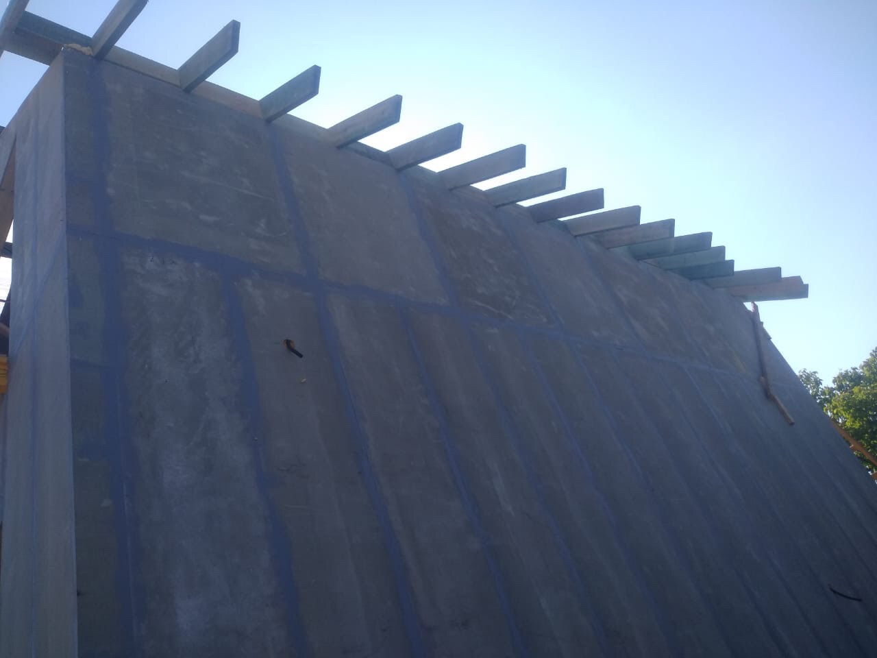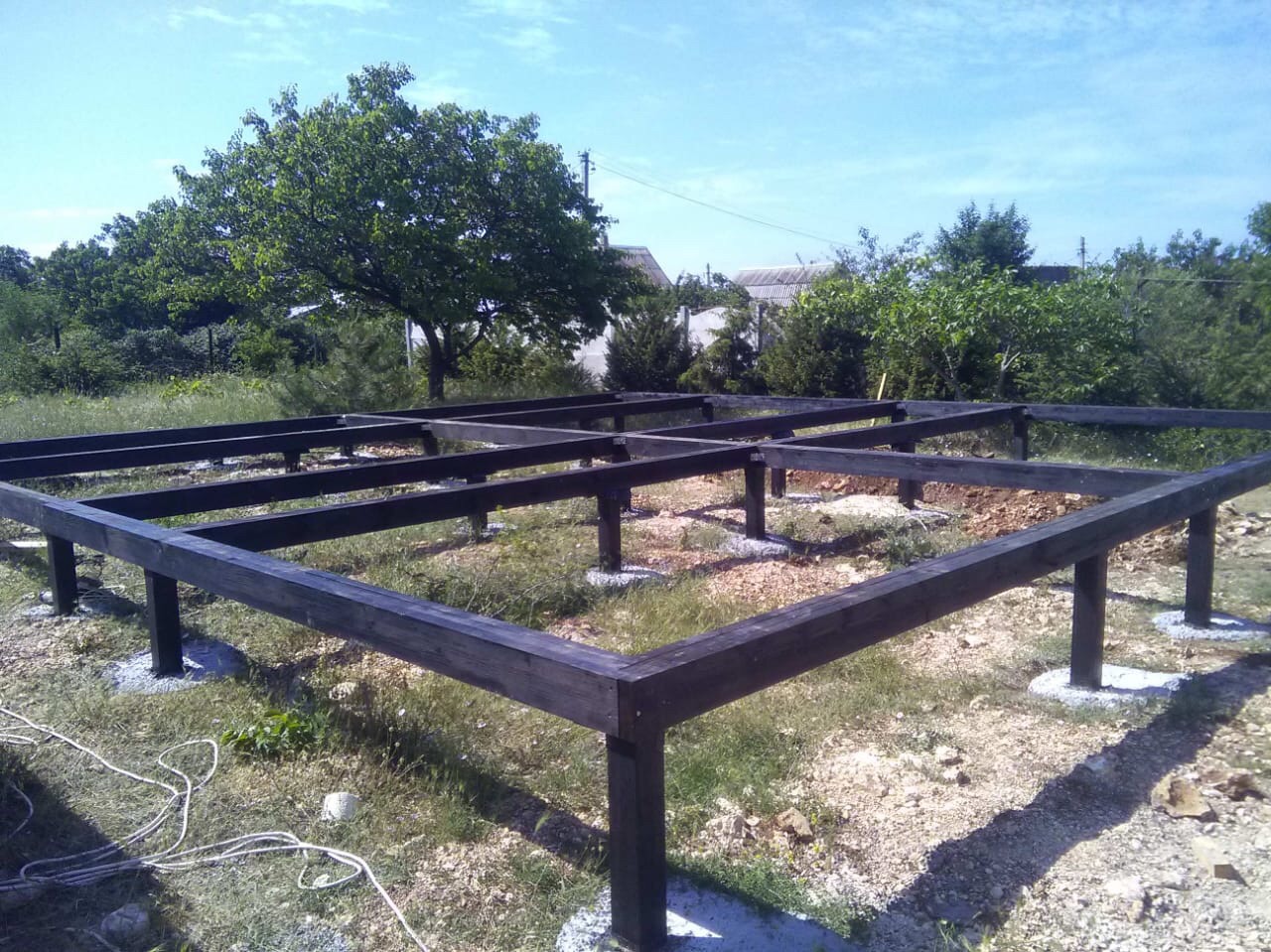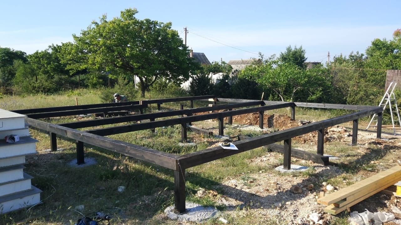 Ростверк изготовлен из калиброванного клееного бруса и защищен снаружи цементно-стружечной плитой