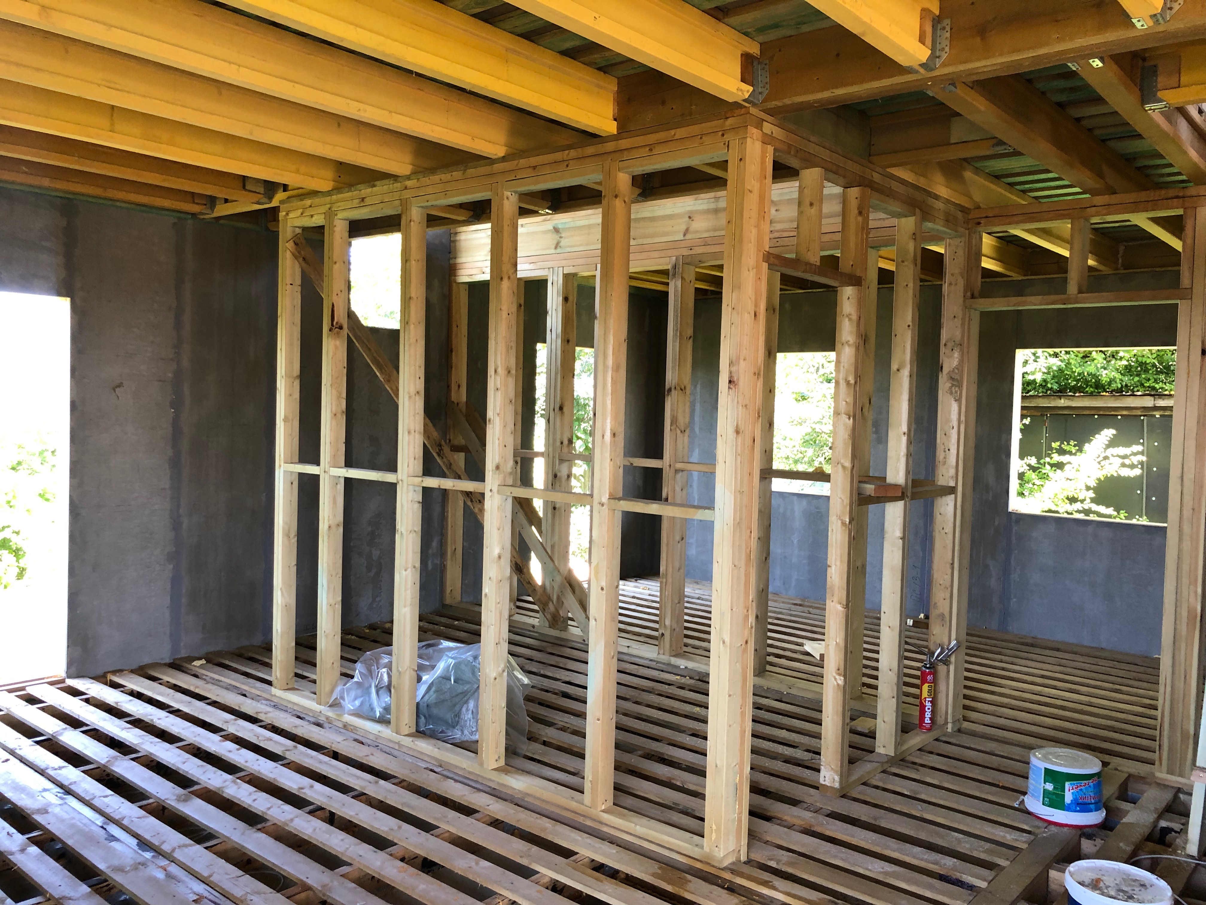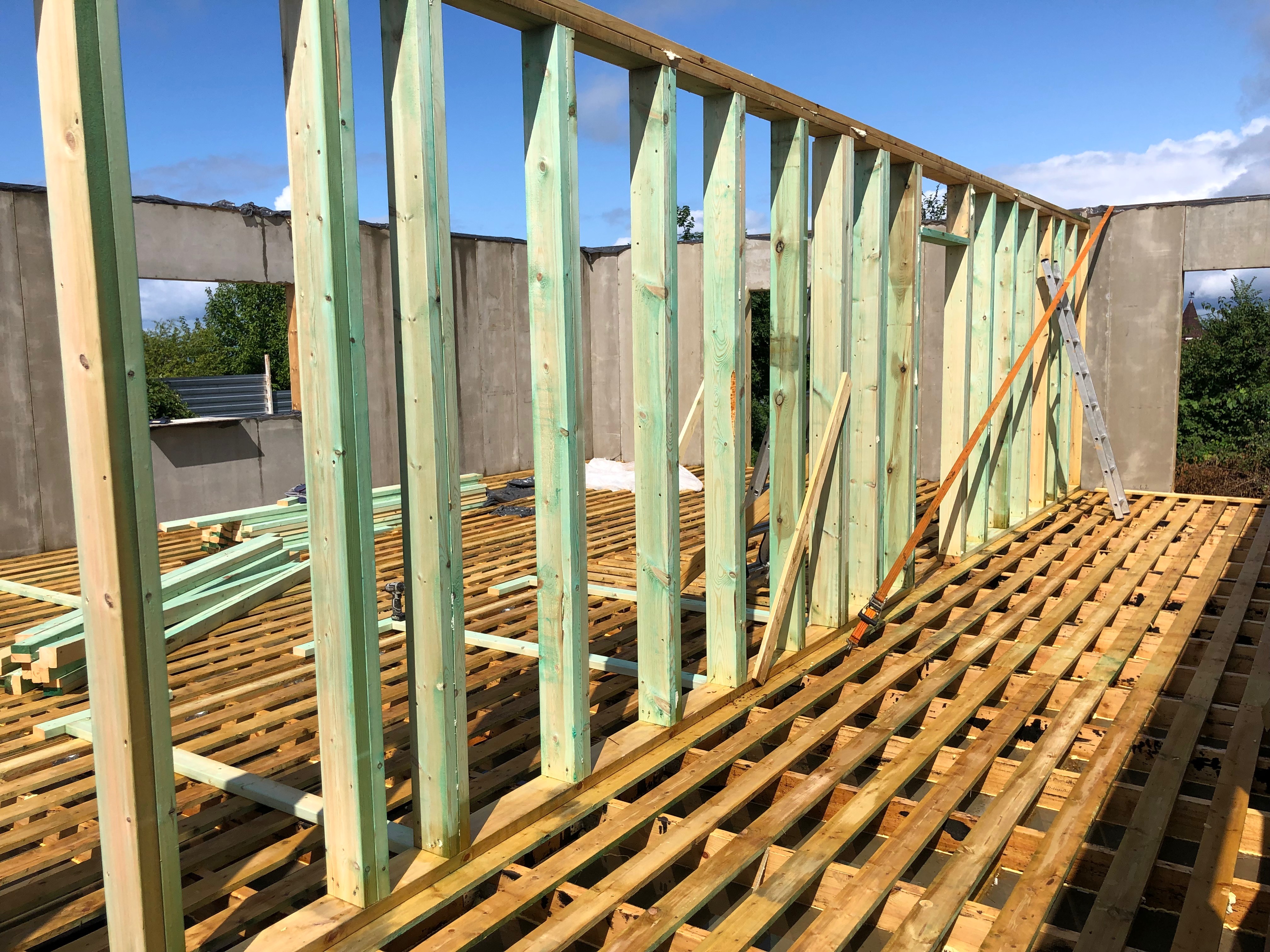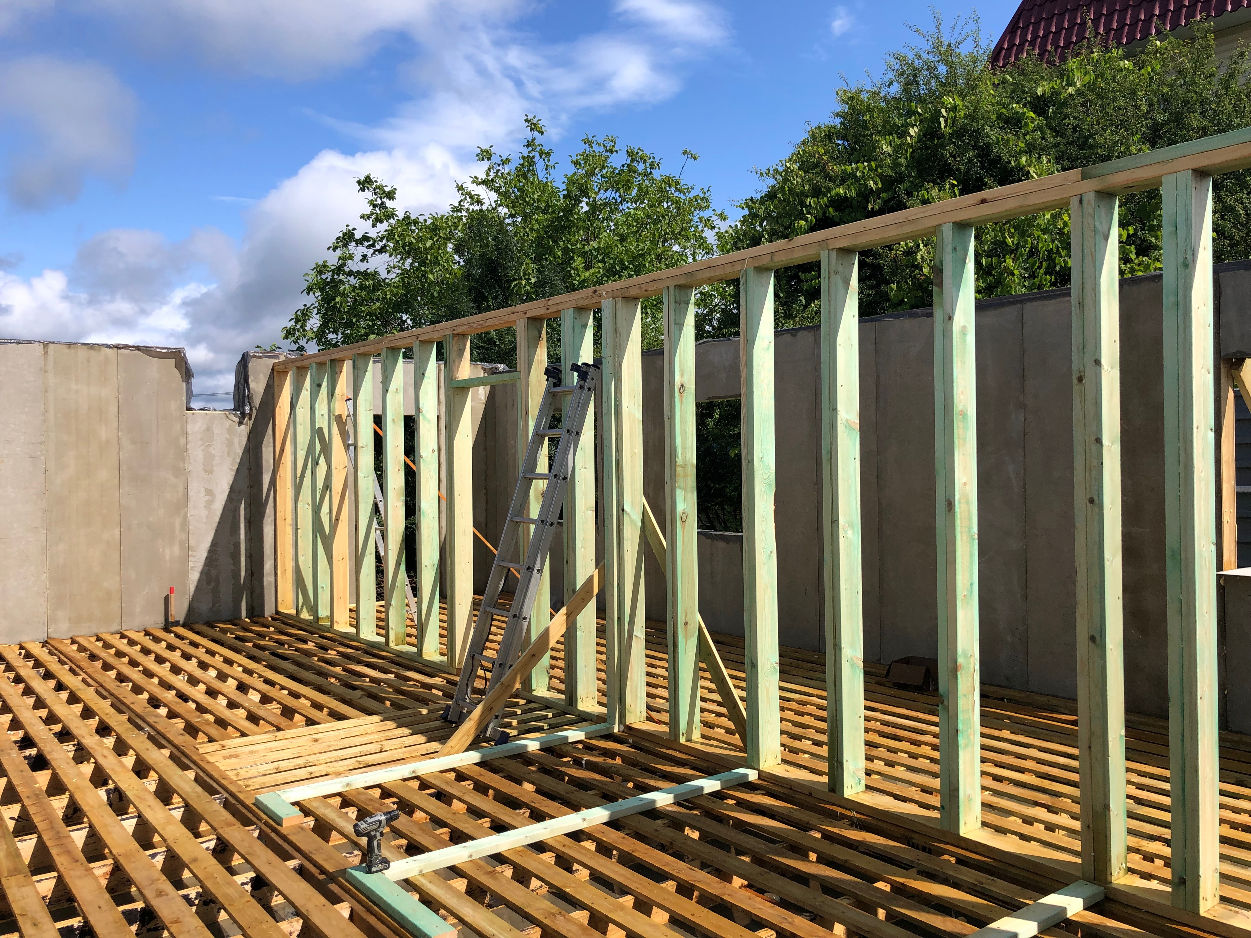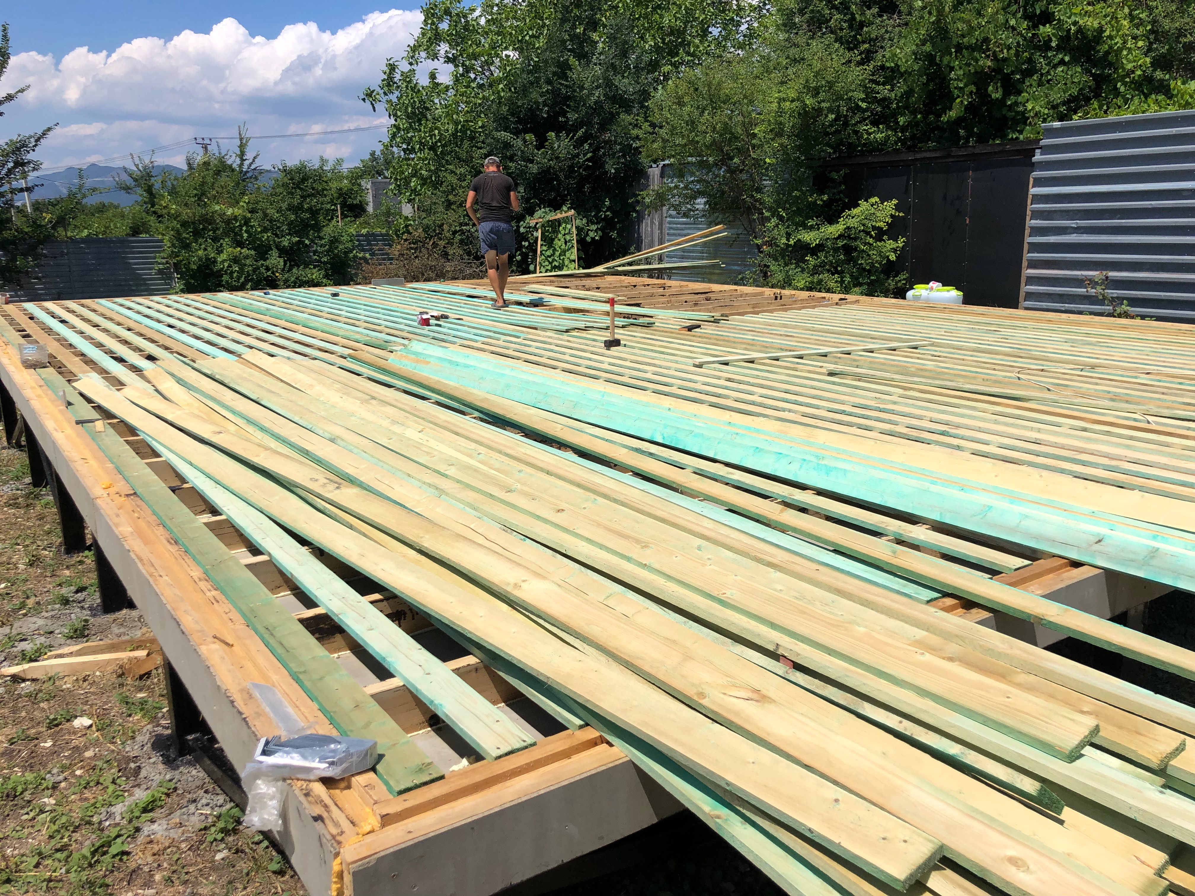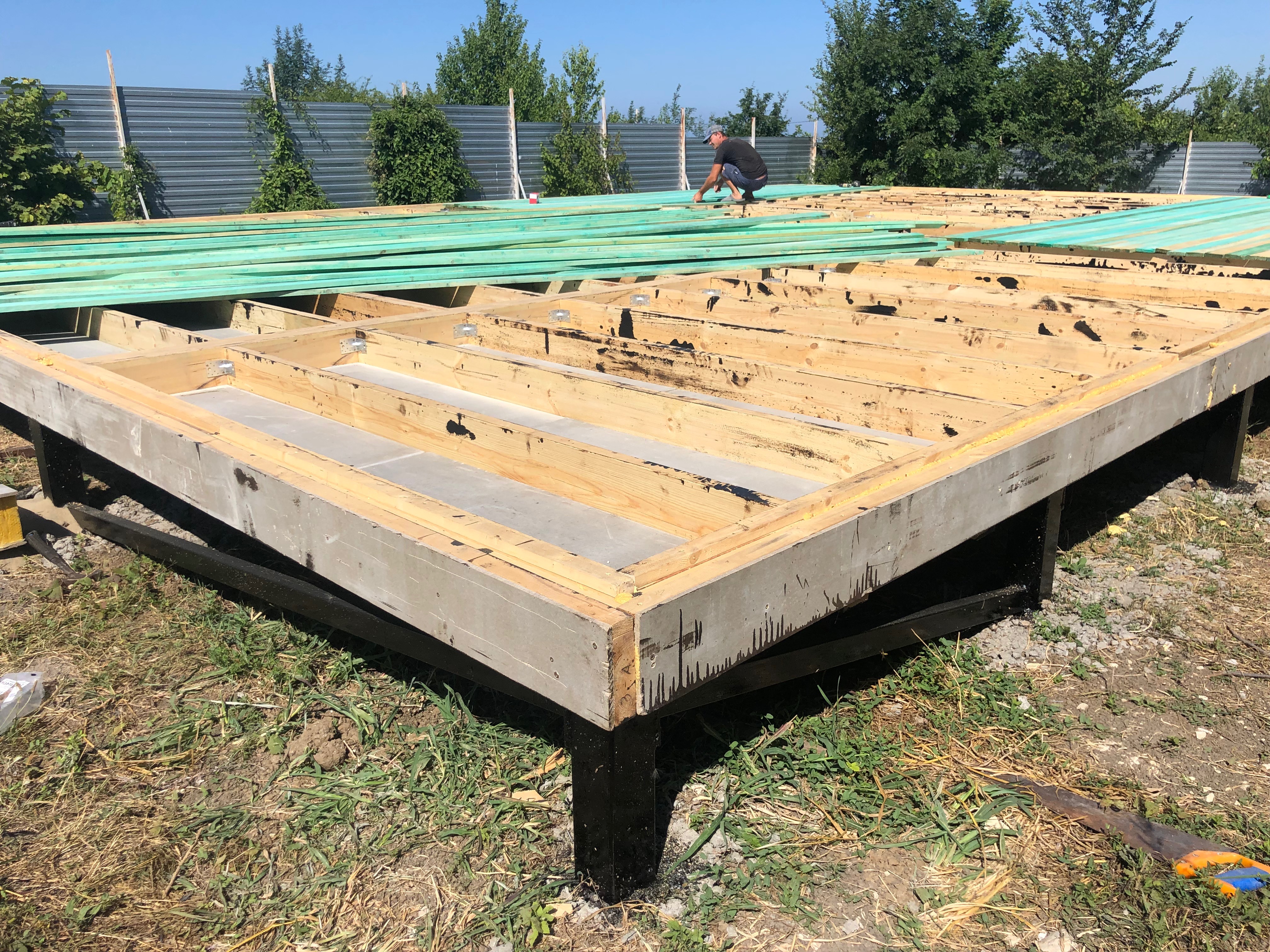 Ростверк изготовлен из калиброванного клееного бруса и защищен снаружи цементно-стружечной плитой