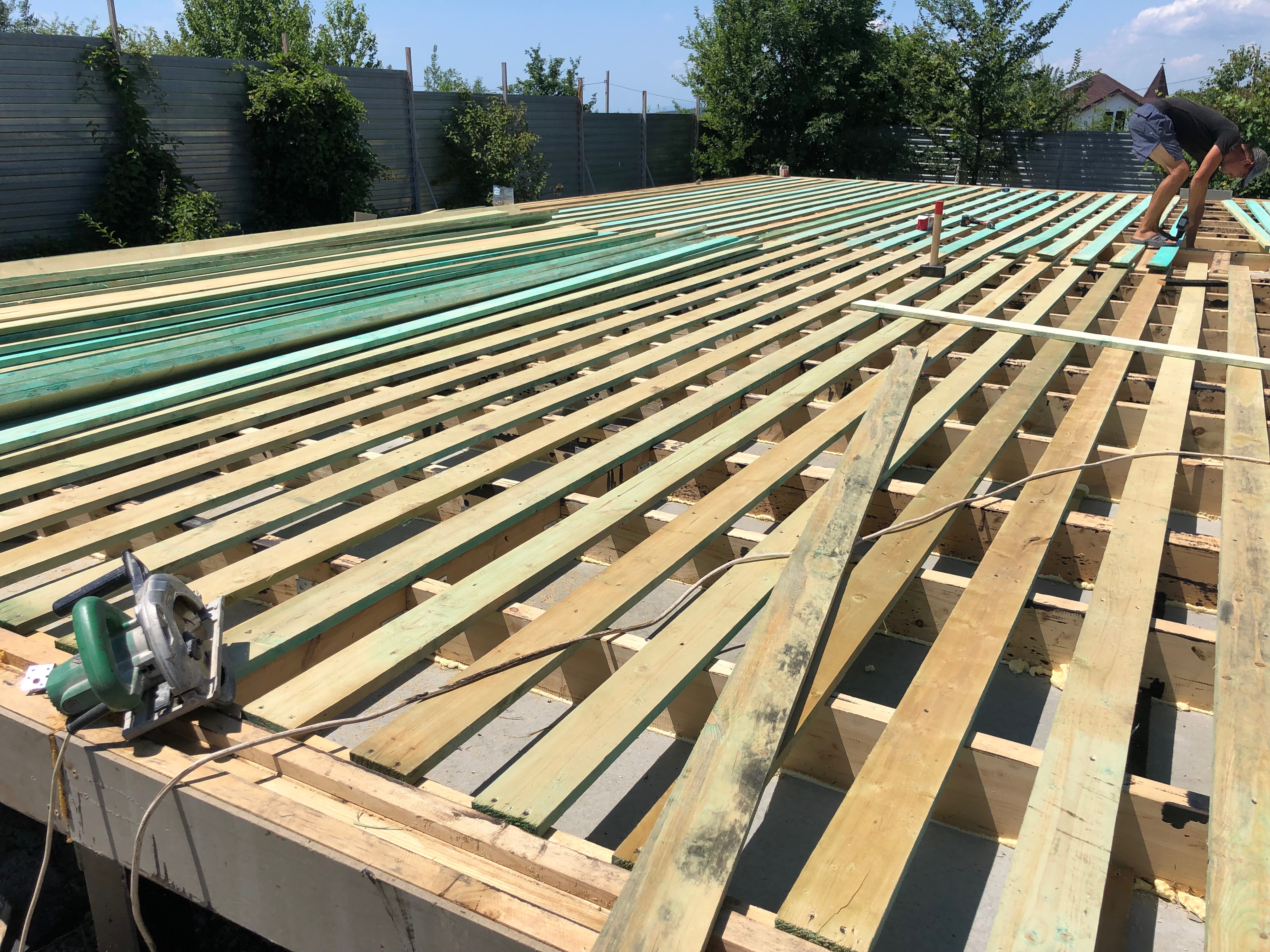 Кровля может быть построена из бруса 150х50мм или SIP панелей. В качестве кровельного материала можно использовать: металлочерепицу, битумную и керамическую черепицу. Также производим кровельные шовные сэндвич-панели.