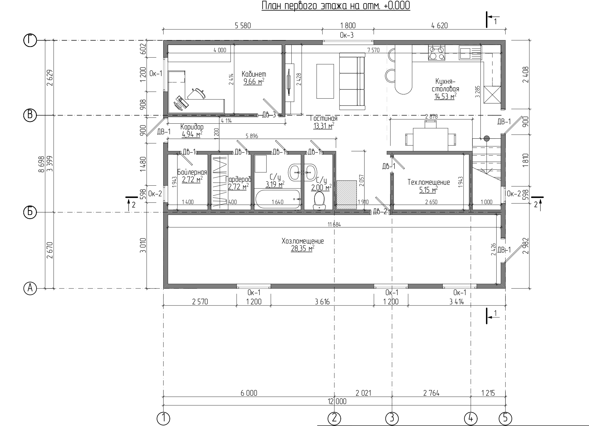 Площадь застройки – 104,38 м2