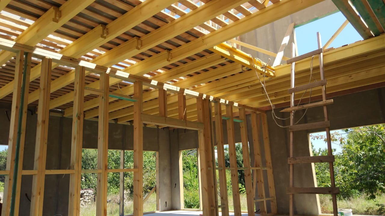 Ростверк изготовлен из калиброванного клееного бруса и защищен снаружи цементно-стружечной плитой