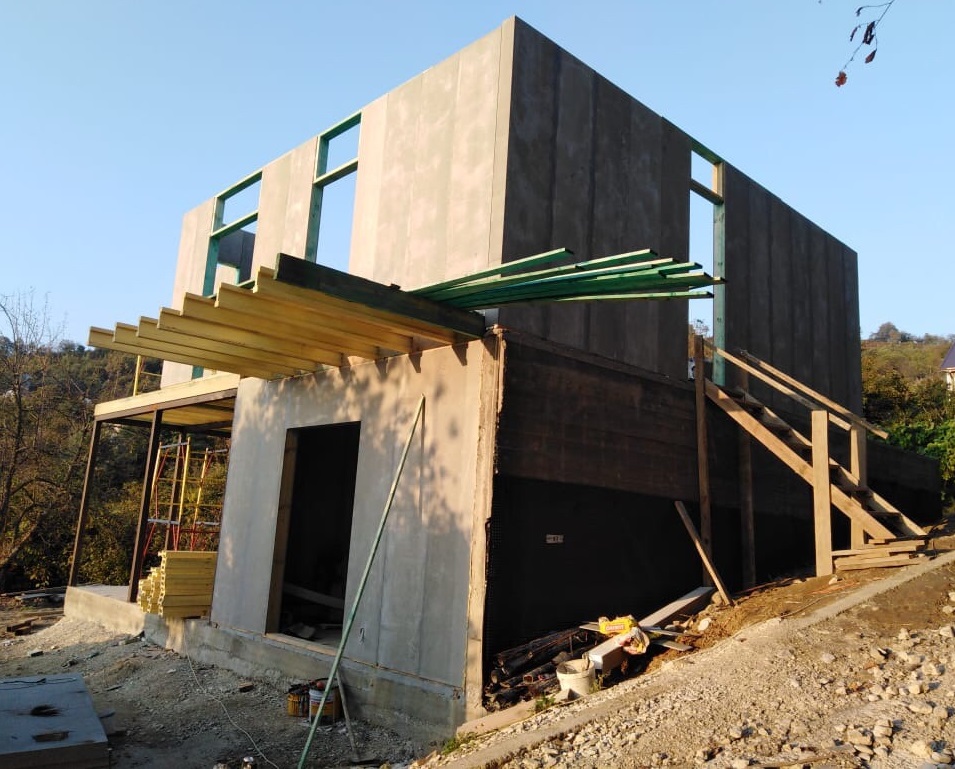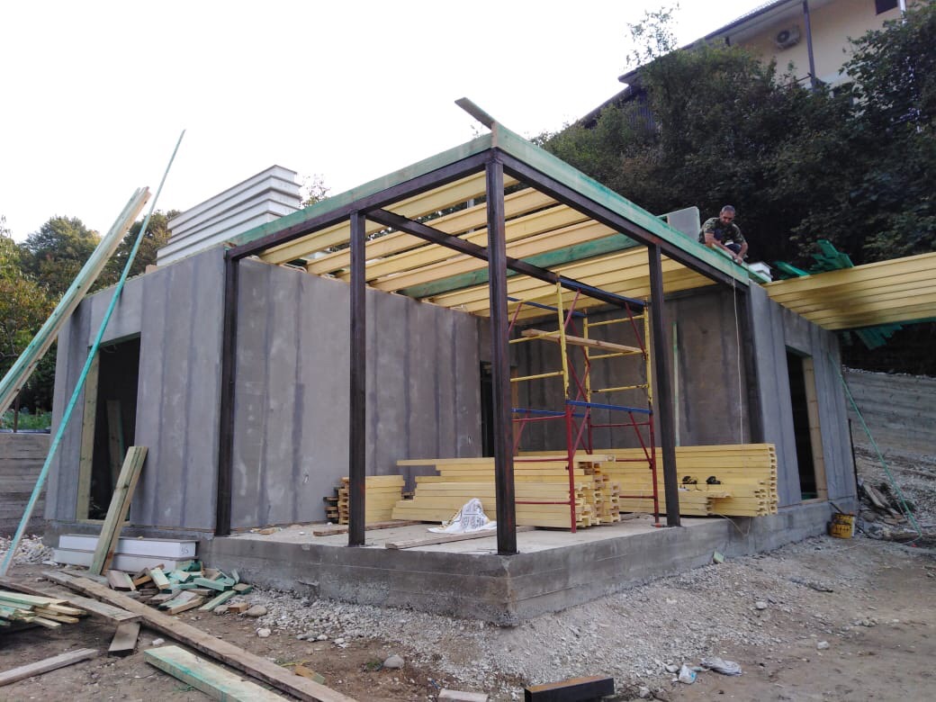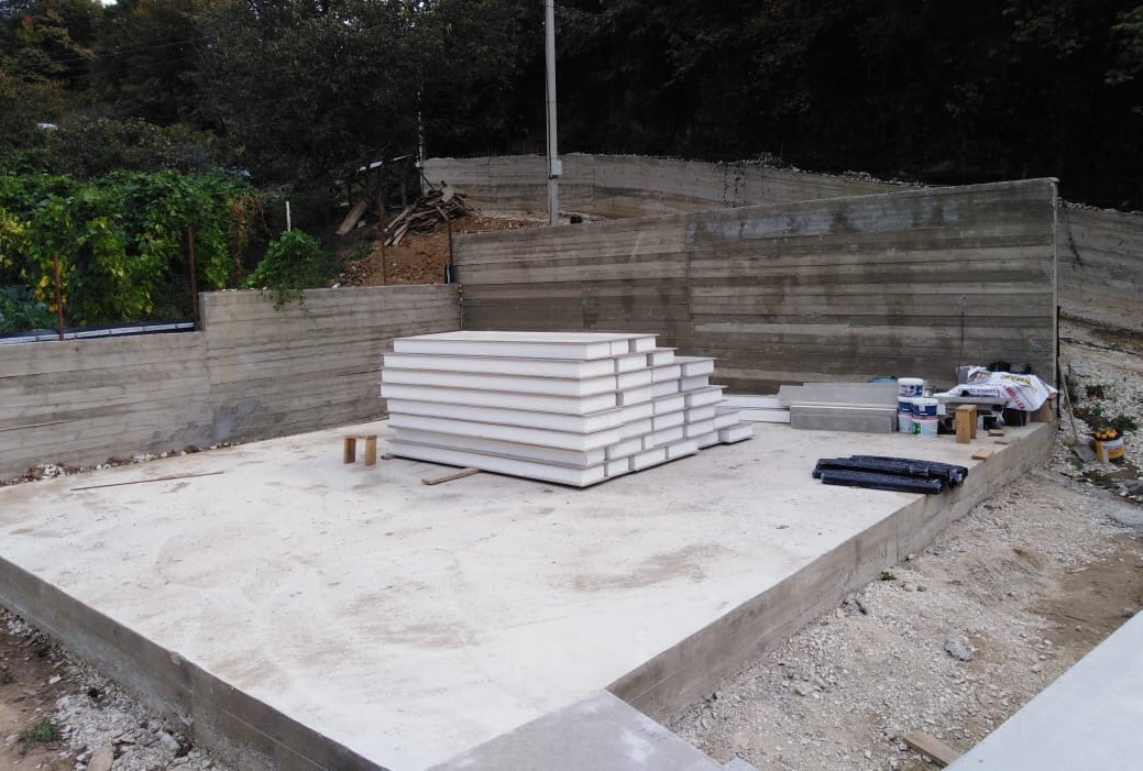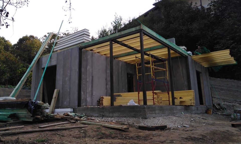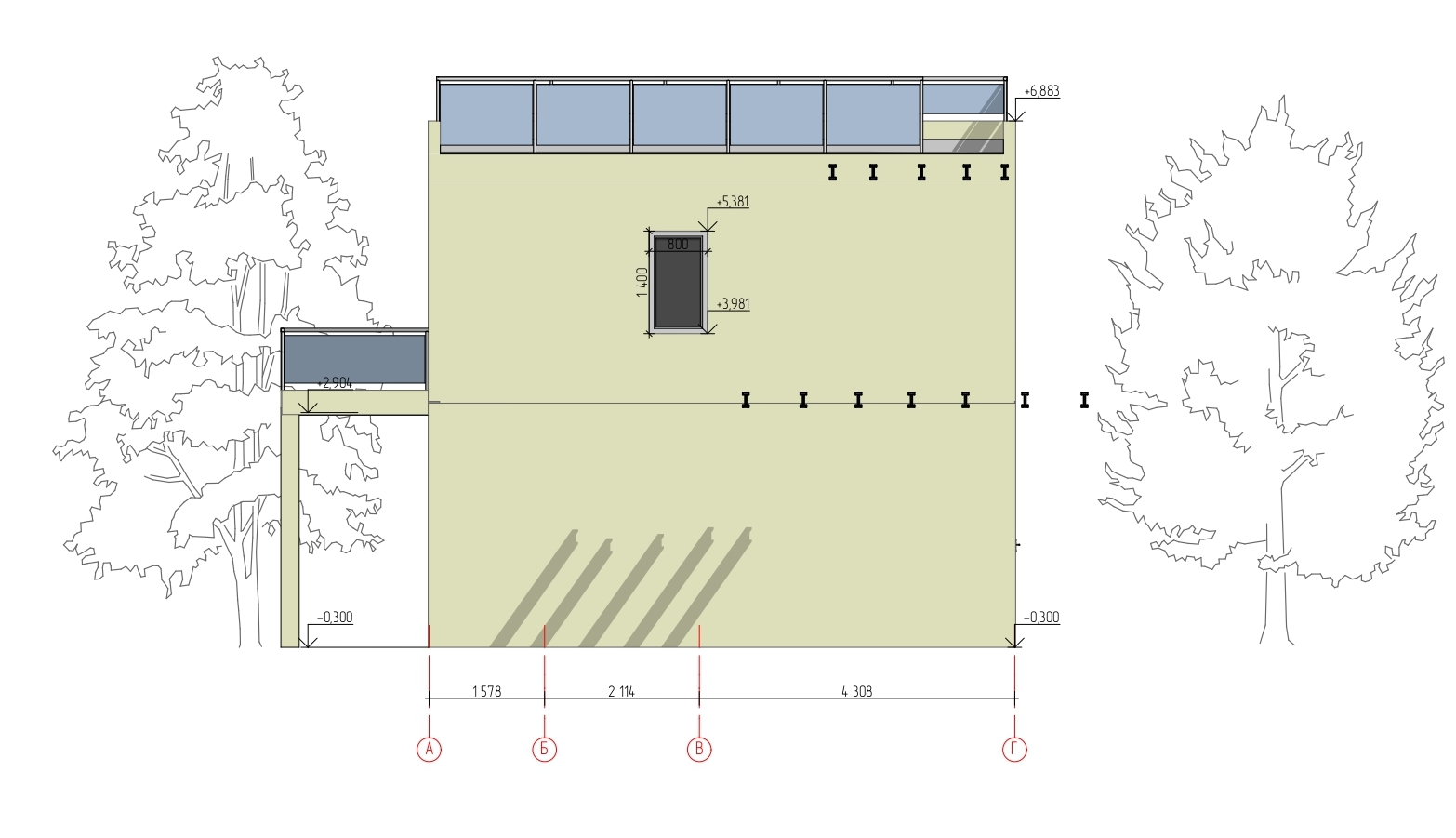 Ростверк изготовлен из калиброванного клееного бруса и защищен снаружи цементно-стружечной плитой