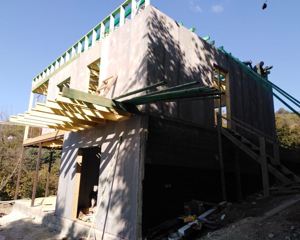 Кровля может быть построена из бруса 150х50мм или SIP панелей. В качестве кровельного материала можно использовать: металлочерепицу, битумную и керамическую черепицу. Также производим кровельные шовные сэндвич-панели.