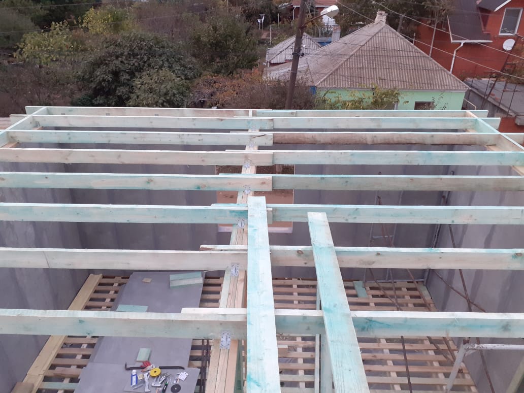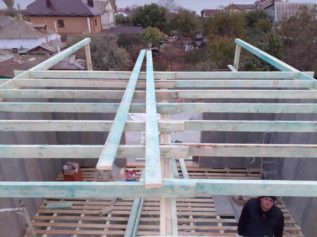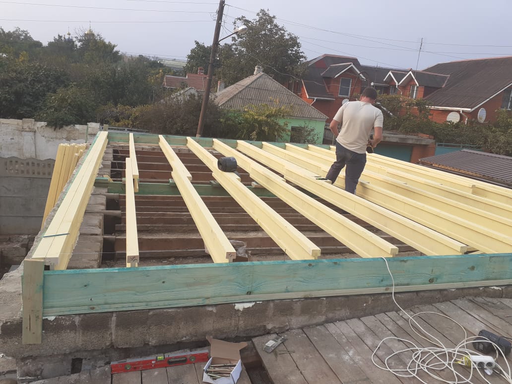 Кровля может быть построена из бруса 150х50мм или SIP панелей. В качестве кровельного материала можно использовать: металлочерепицу, битумную и керамическую черепицу. Также производим кровельные шовные сэндвич-панели.