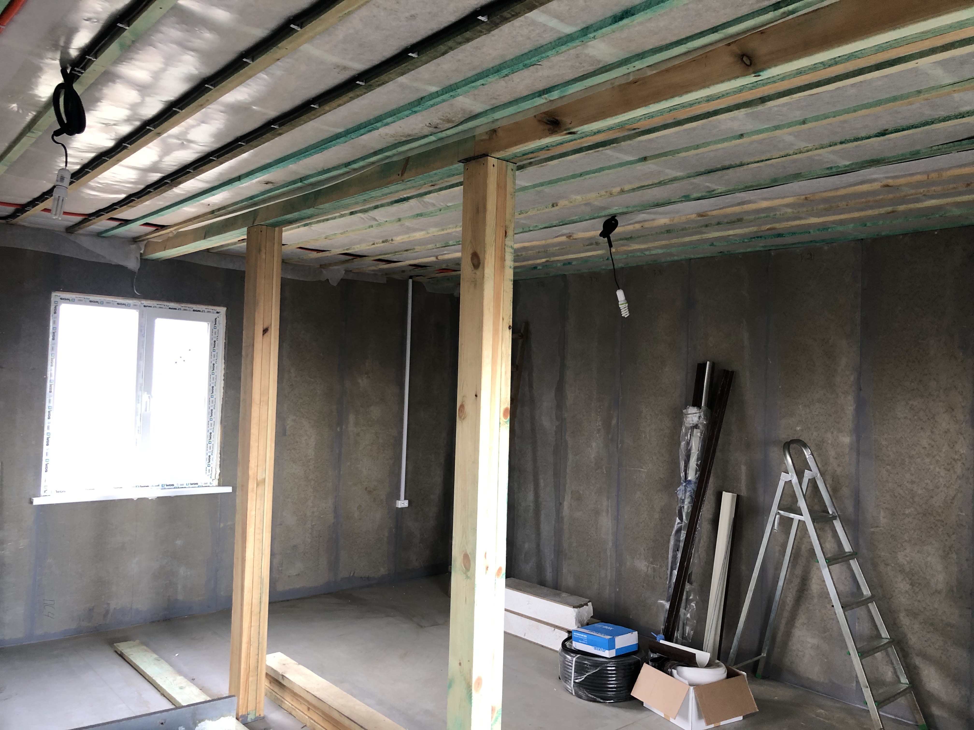 Потолок состоит из двутавровых балок 250 мм, а шаг монтажа балок - 600 мм.
