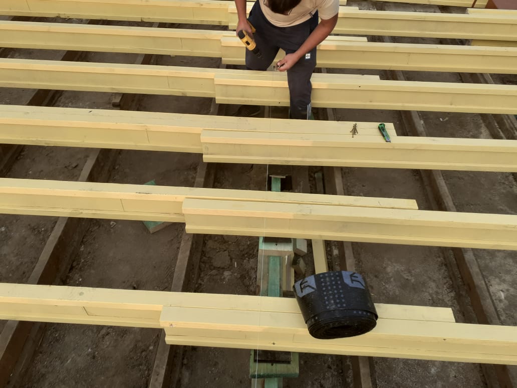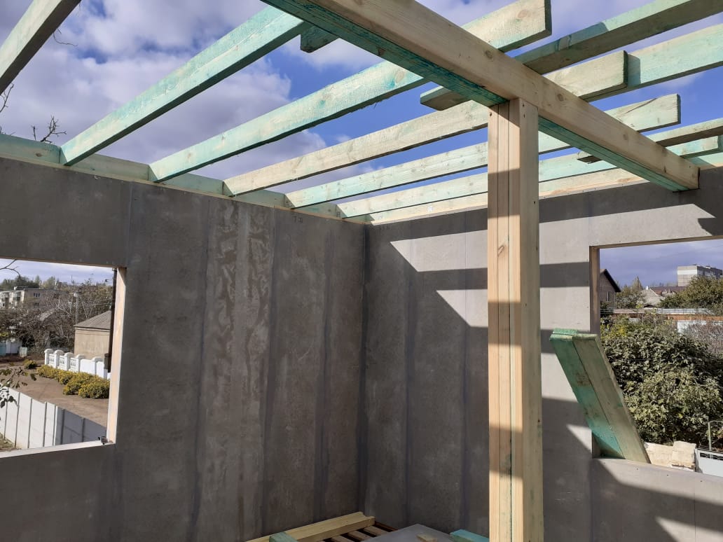 Ростверк изготовлен из калиброванного клееного бруса и защищен снаружи цементно-стружечной плитой