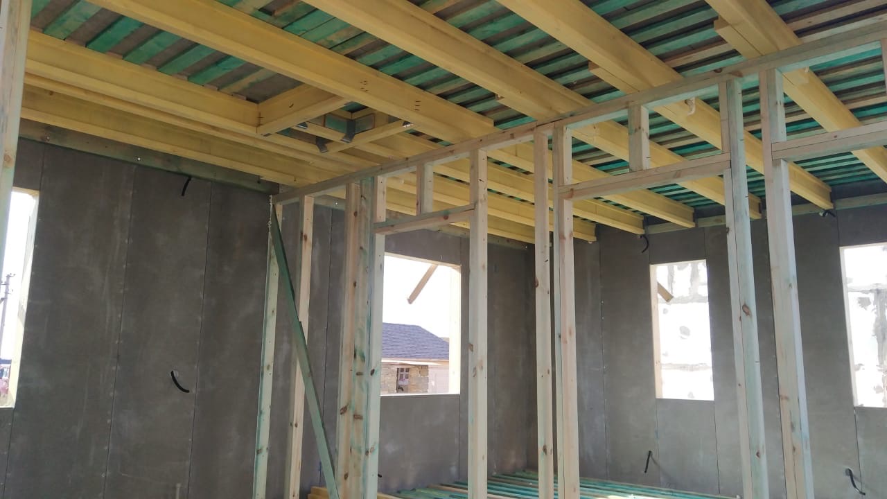 Ростверк изготовлен из калиброванного клееного бруса и защищен снаружи цементно-стружечной плитой