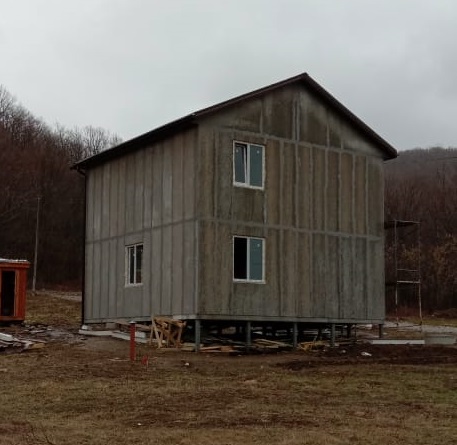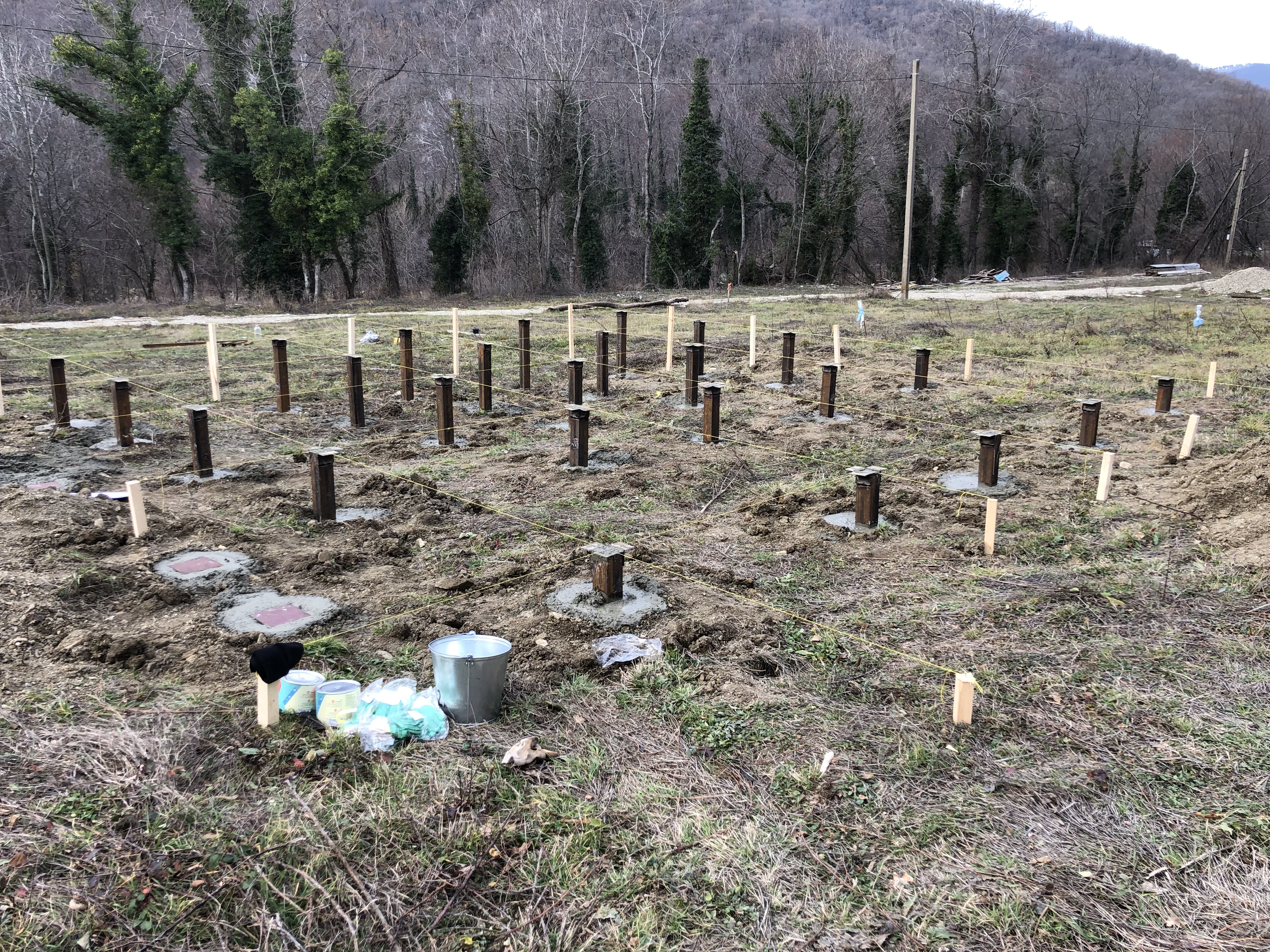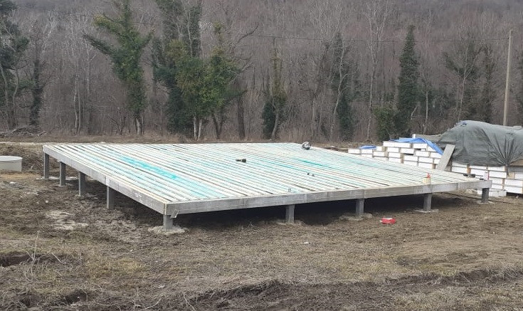 Ростверк изготовлен из калиброванного клееного бруса и защищен снаружи цементно-стружечной плитой