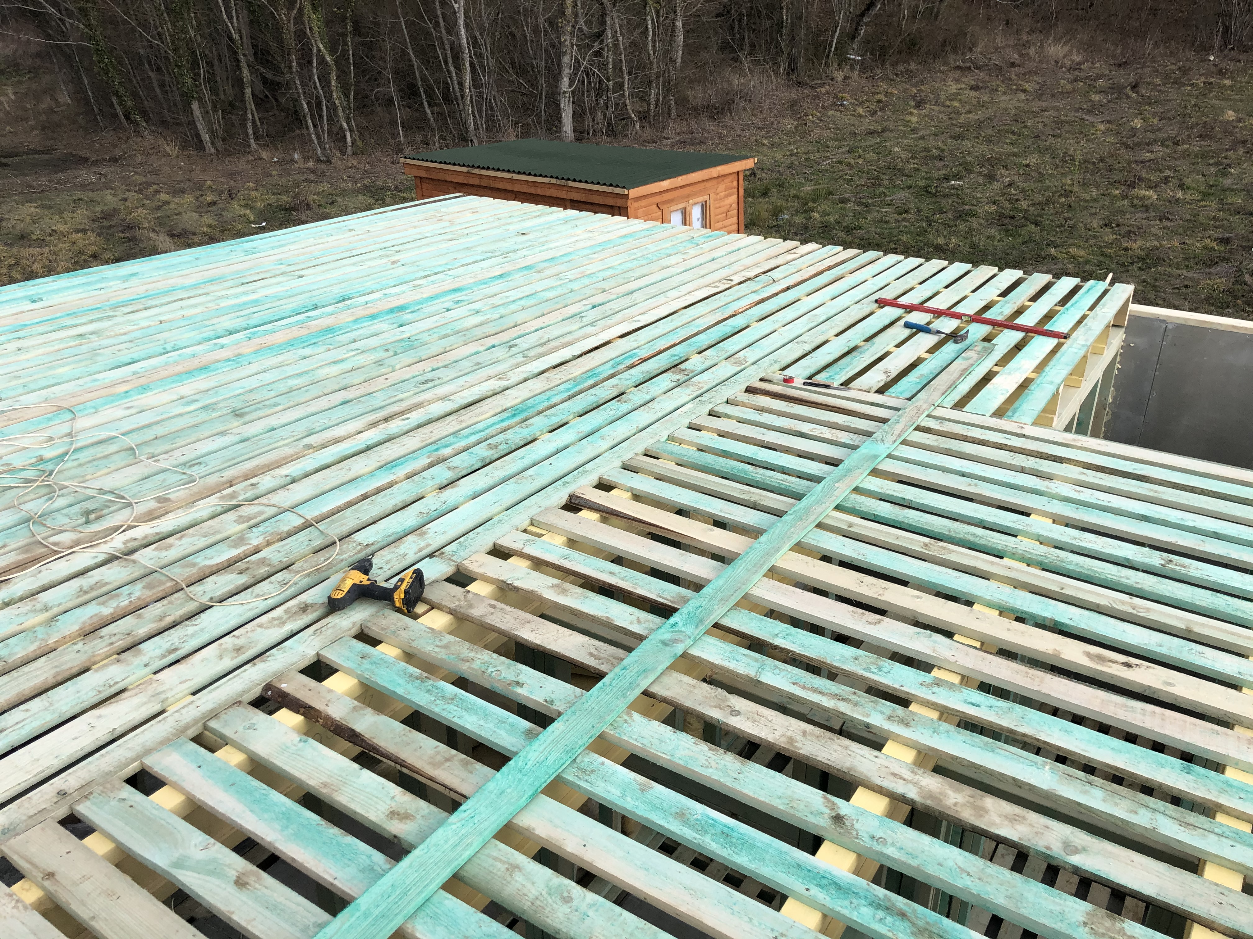 Кровля может быть построена из бруса 150х50мм или SIP панелей. В качестве кровельного материала можно использовать: металлочерепицу, битумную и керамическую черепицу. Также производим кровельные шовные сэндвич-панели.