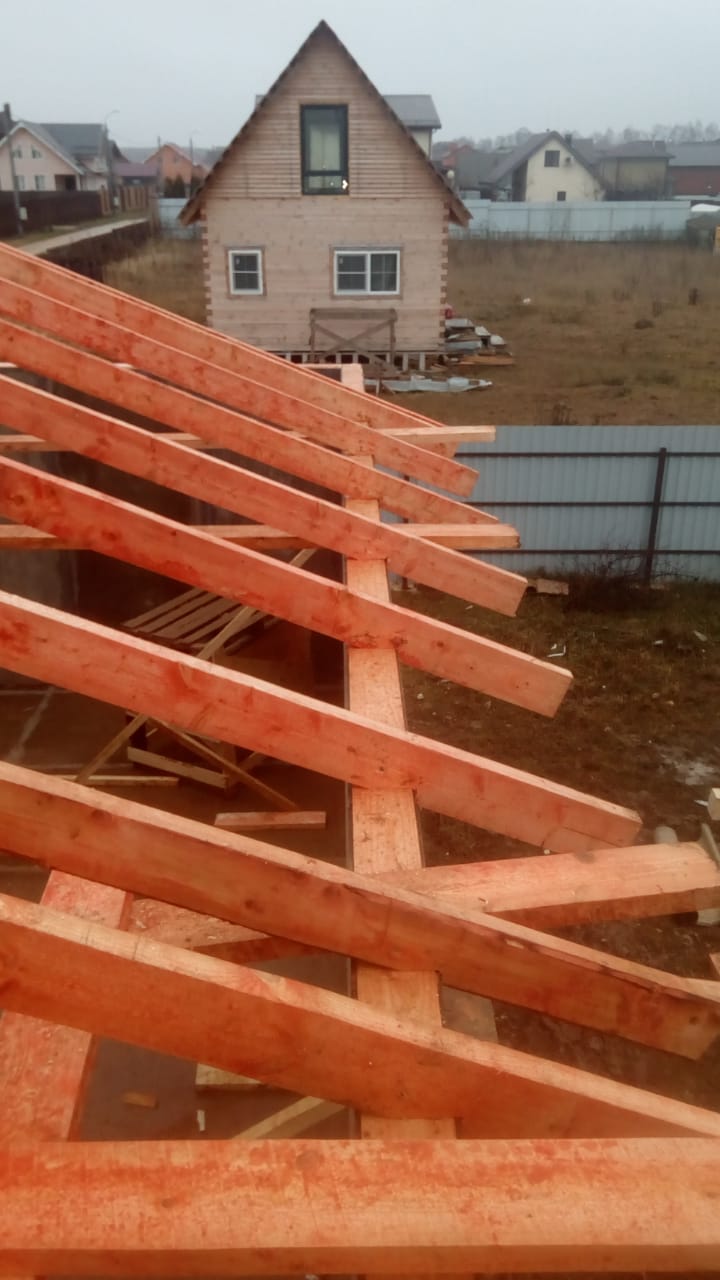 Кровля может быть построена из бруса 150х50мм или SIP панелей. В качестве кровельного материала можно использовать: металлочерепицу, битумную и керамическую черепицу. Также производим кровельные шовные сэндвич-панели.