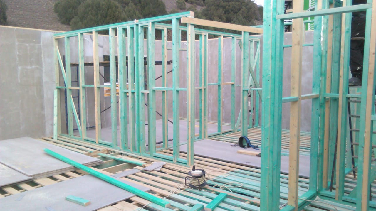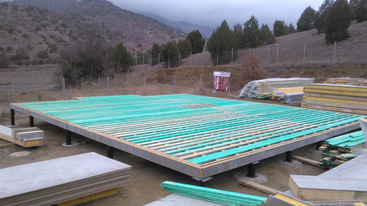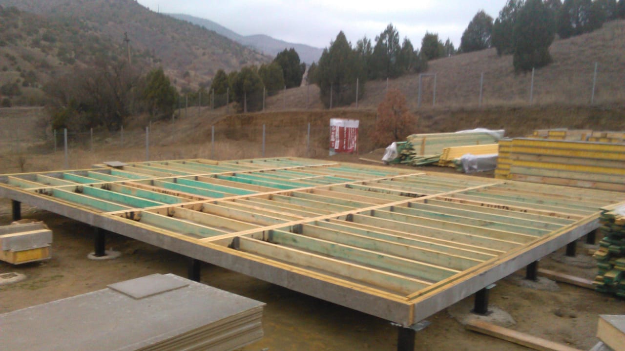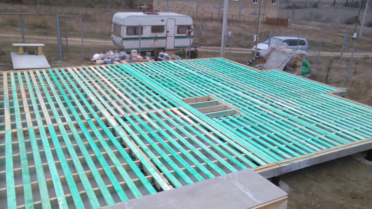Ростверк изготовлен из калиброванного клееного бруса и защищен снаружи цементно-стружечной плитой