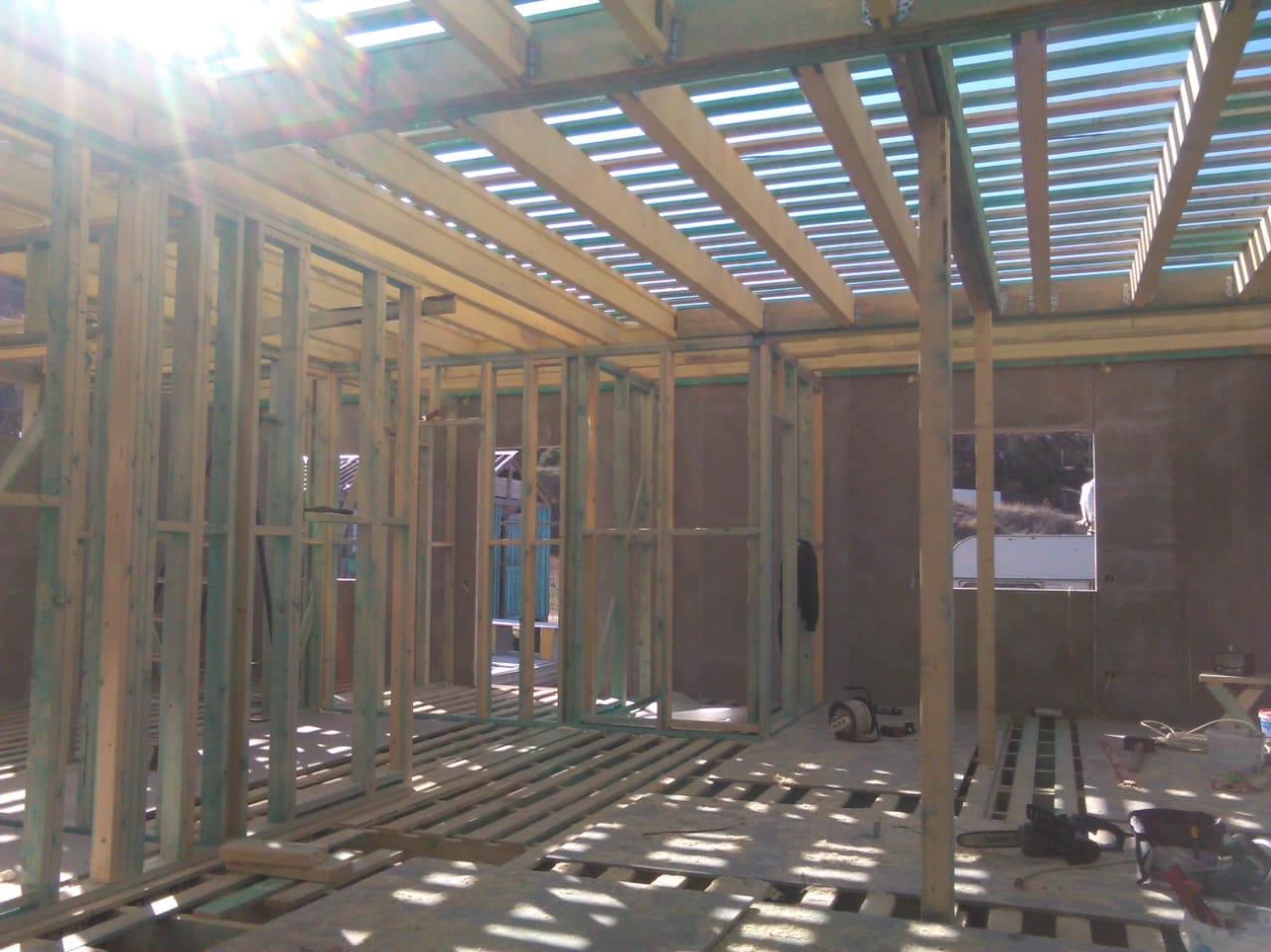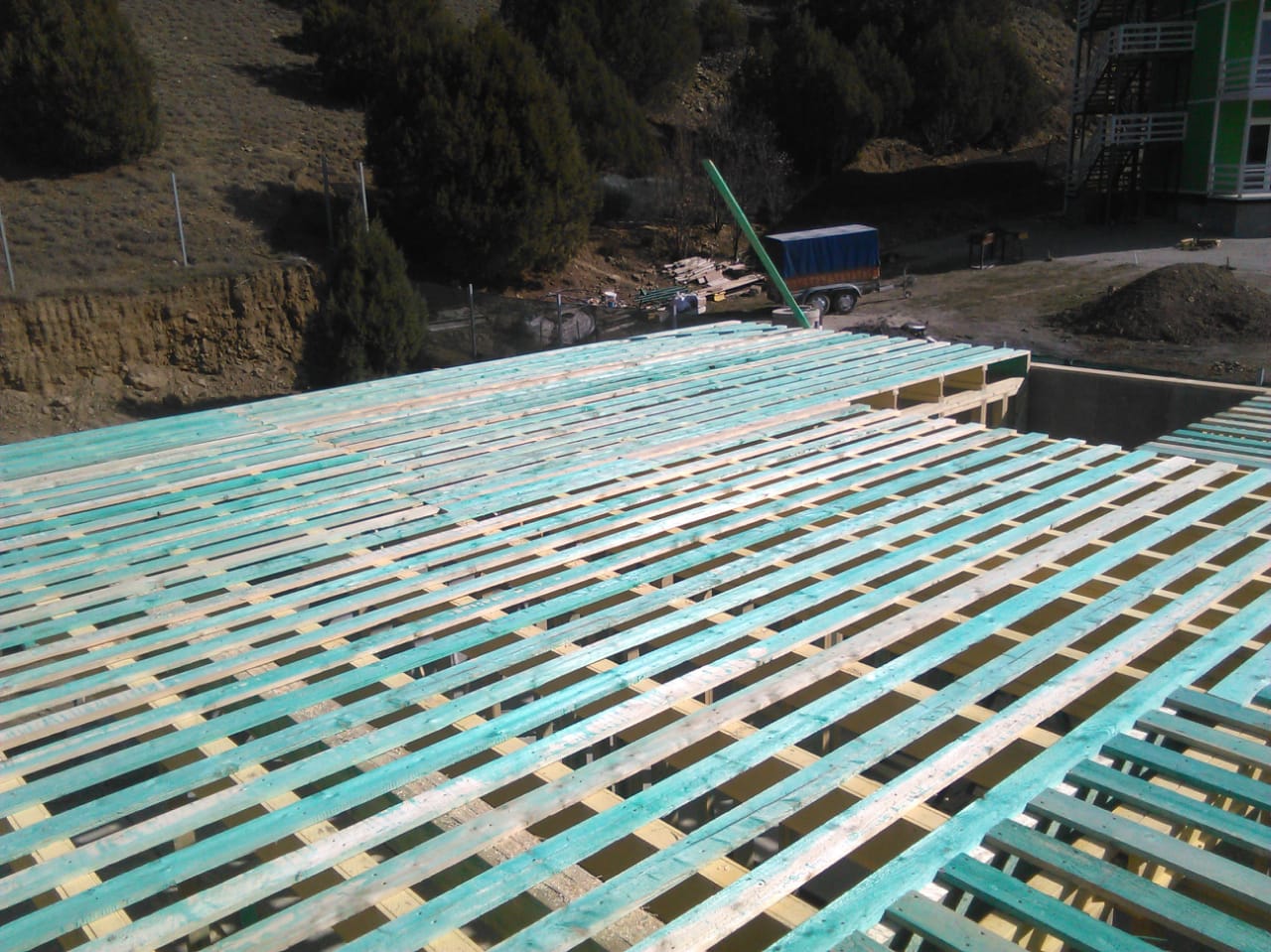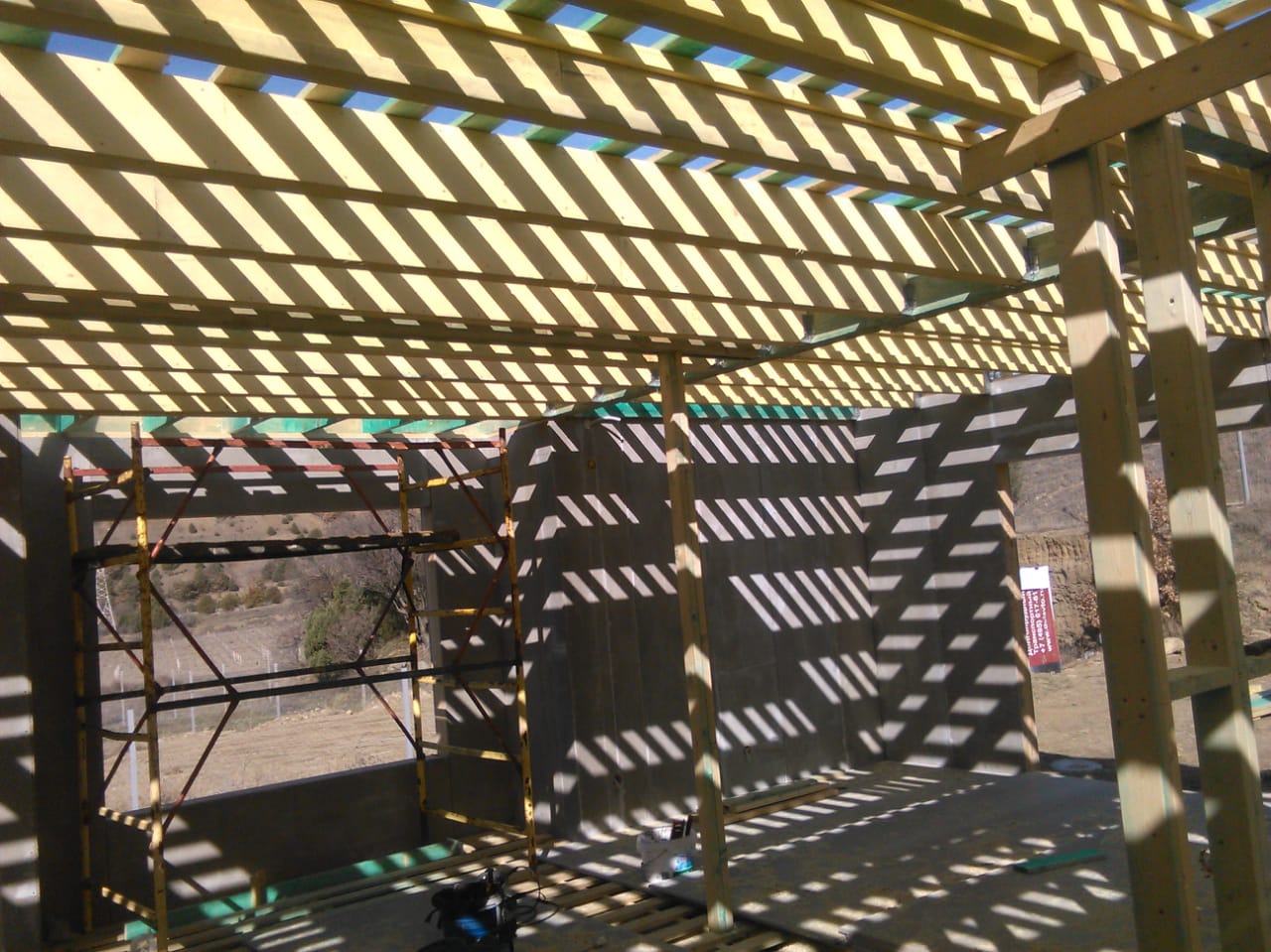 Ростверк изготовлен из калиброванного клееного бруса и защищен снаружи цементно-стружечной плитой