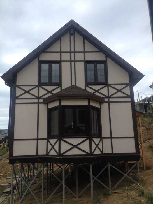 — материал готов для монтажа стен и укомплектован по проекту. В данном случае дом полностью готов к сборке стен, перегородок, а также каркаса межэтажного перекрытия.