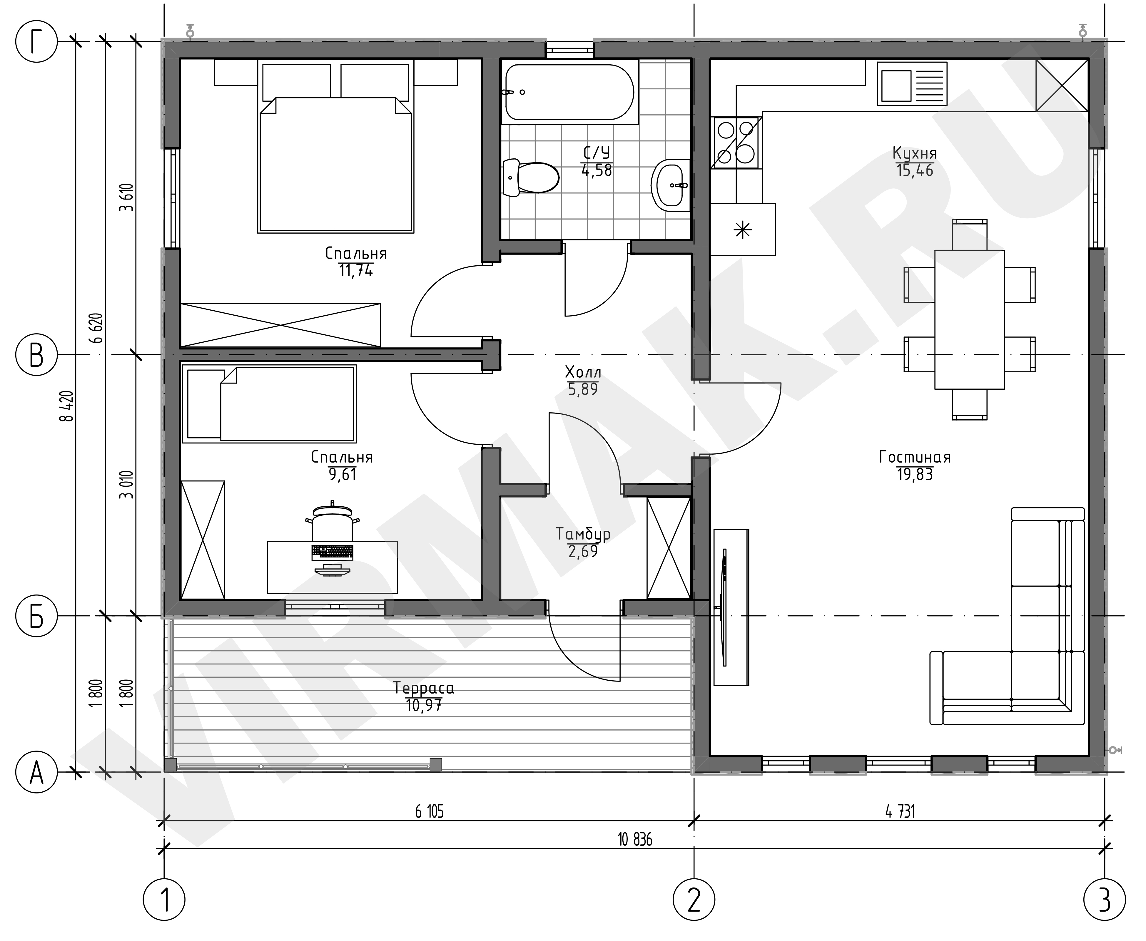 * В данную комплектацию не входит фундамент и крыша. Его тип и стоимость определяется индивидуально в зависимости от особенностей вашего участка.