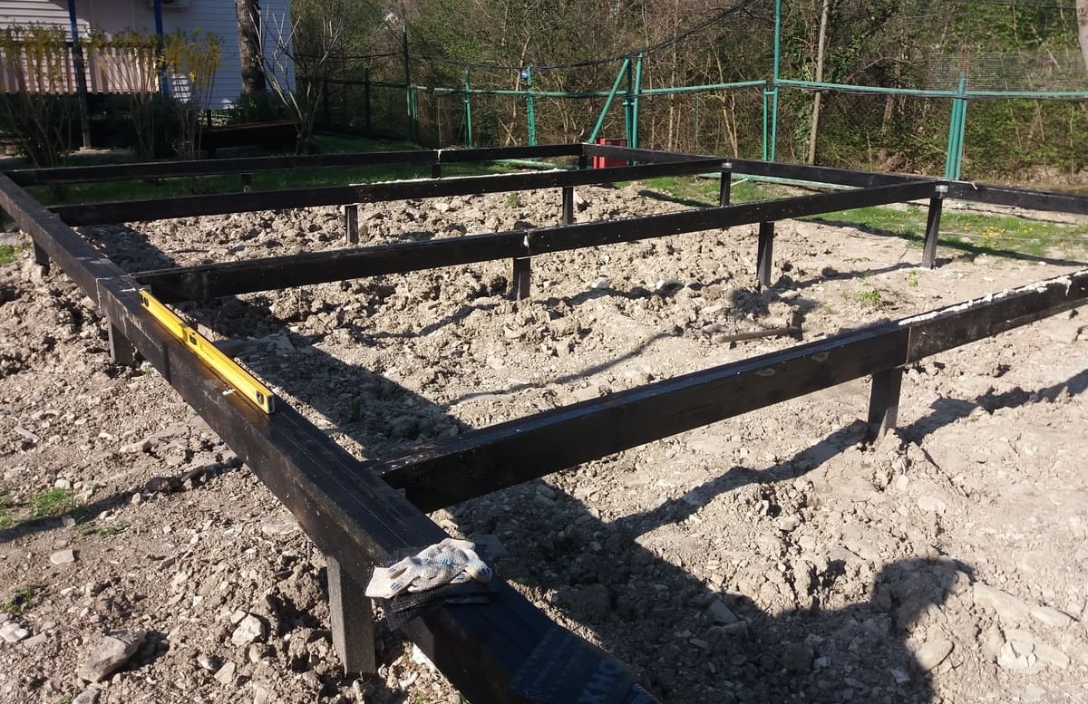 Ростверк изготовлен из калиброванного клееного бруса и защищен снаружи цементно-стружечной плитой
